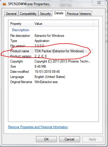 After you`ve extracted the first exe check if the 5PCN20WW.exe is a phoenix TDK bios by looking at the file details,right click on the exe - select properties then the details tab.