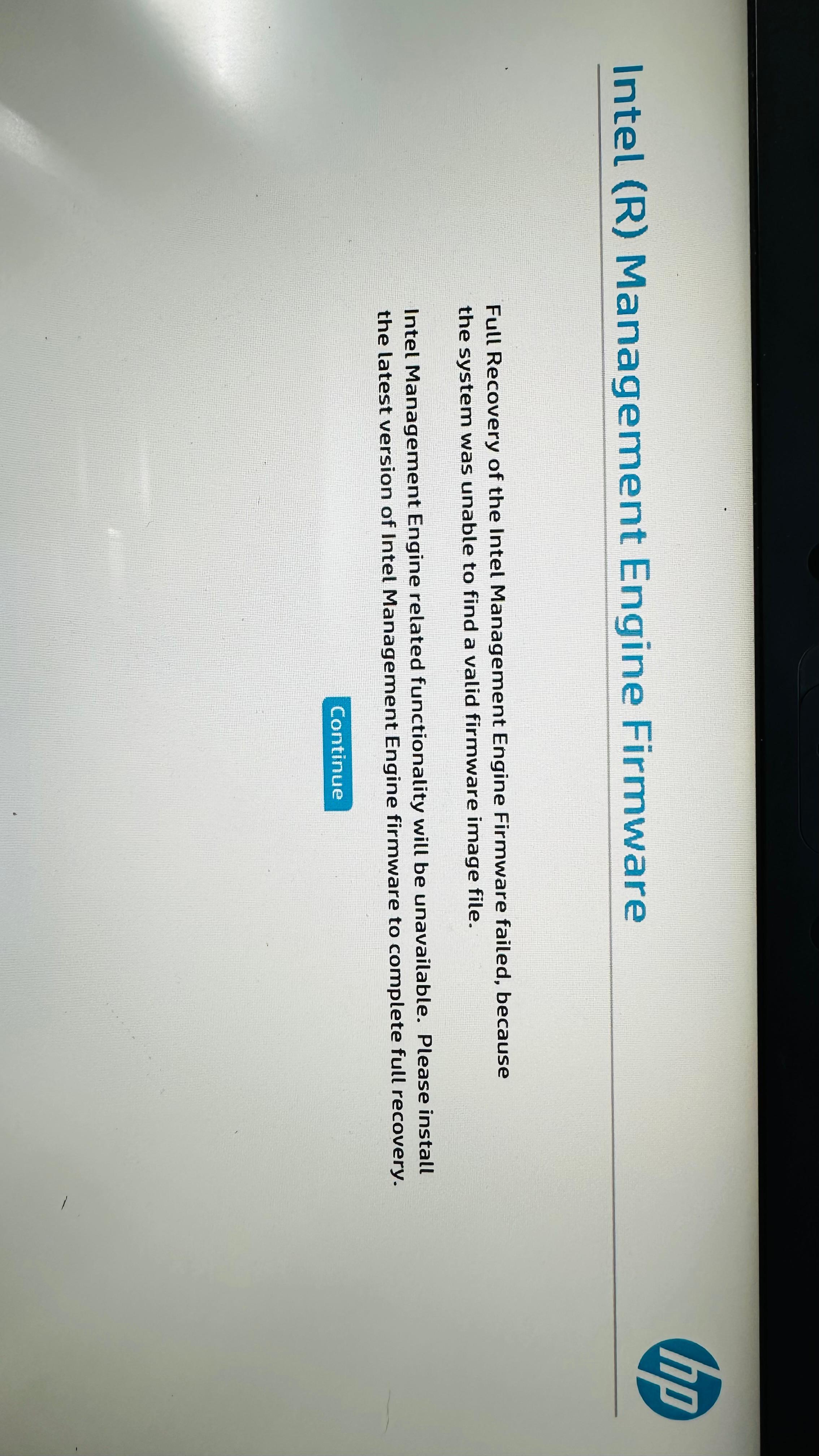 "Full Recovery of the Intel Management Engine Firmware failed, because the system was unable to find a valid firmware image file. Intel Management Engine related functionality will be unavailable. Please install the latest version of Intel Management Engine Firmware to complete full recovery."