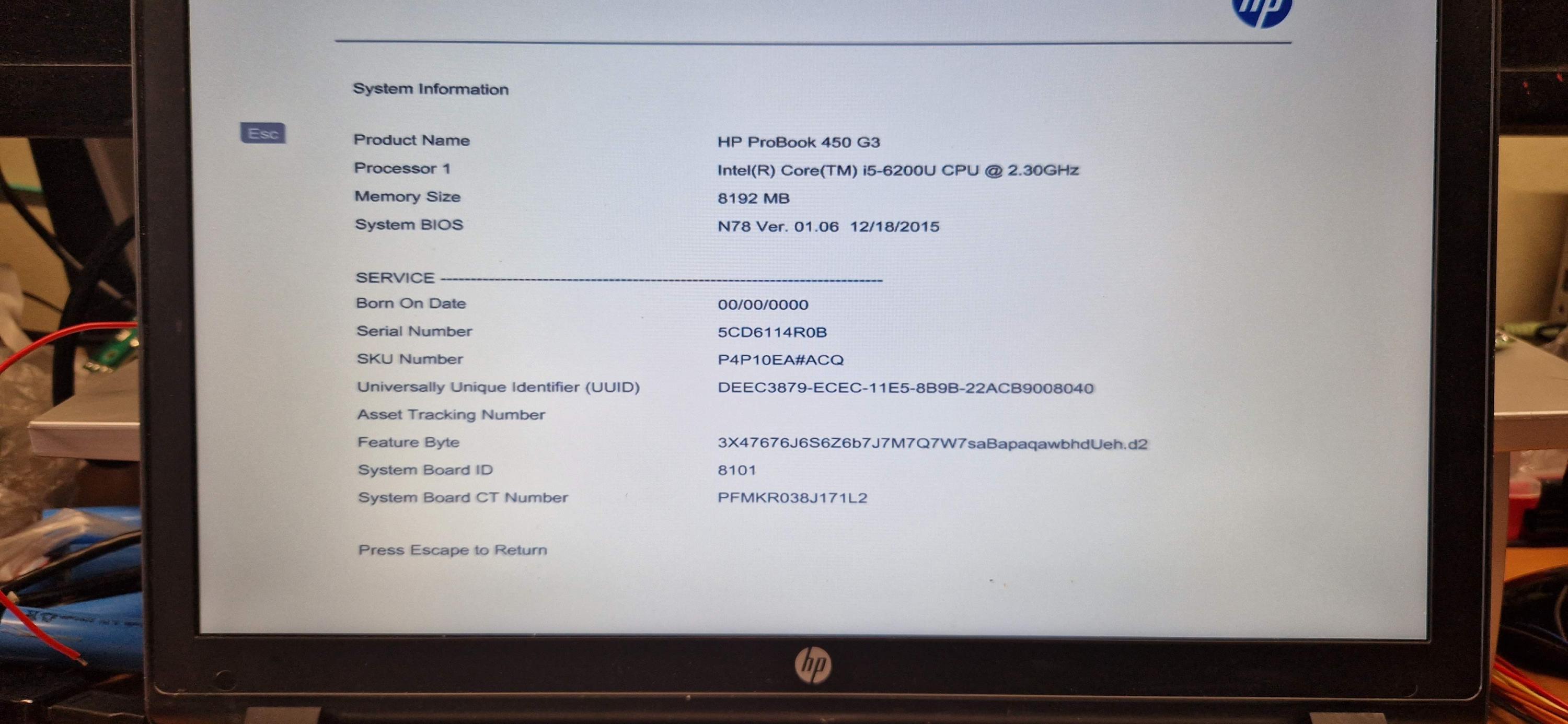 Hp 450 g3 product information not valid