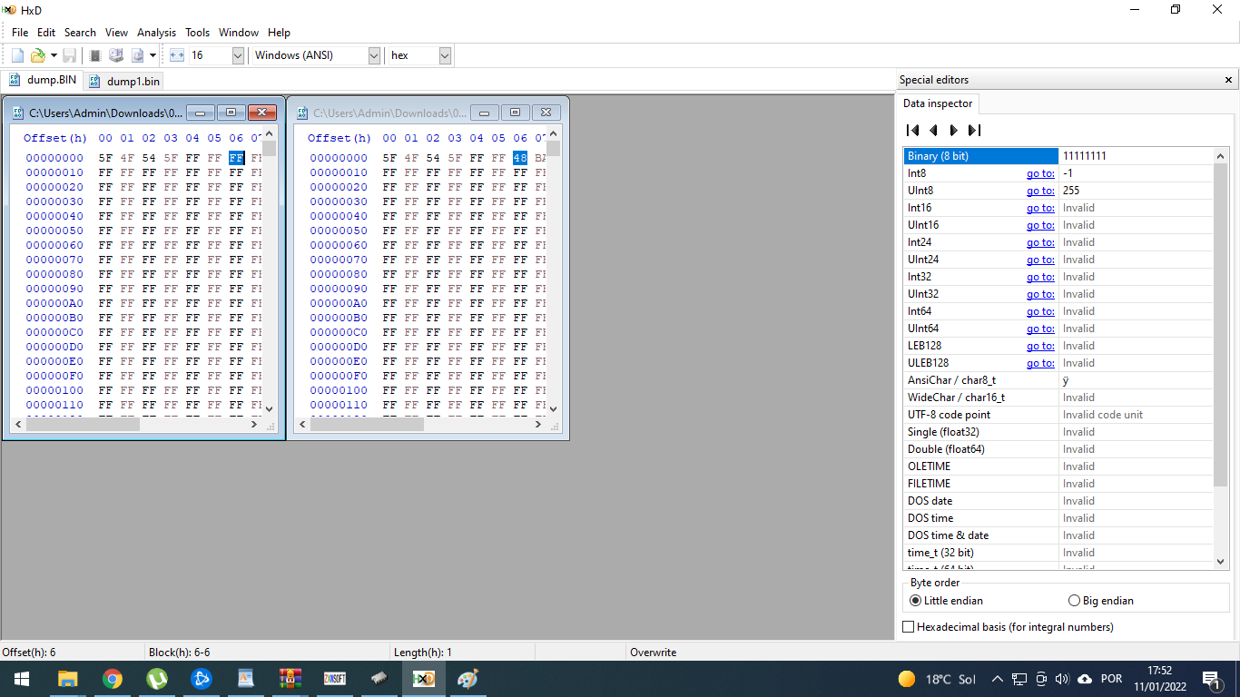 Hi, and thank you for your quick response. I have done a few dumps and compared them using HxD. You can find the dumps in the attachment.