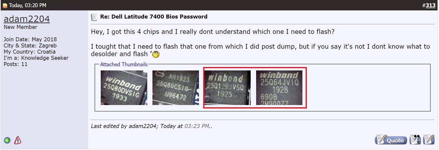 Hi, please help me to remove SVP for Dell Latitude 7400. I am a bit confused, UC6 is a W25q128JV 16Mb and not 32Mb.Last edited by SMDFlea; 04-02-2023, 02:50 PM.----------------------------------------------------------------------------------------------------------------------------------------------------------------------