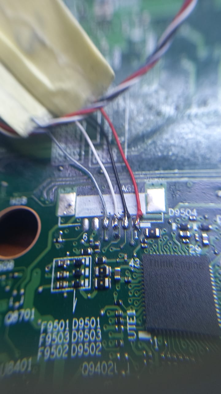 The Samsung S49CG934SU monitor does not power on - no LED indicator activity and no response to power button. However, when 21V power is connected, it immediately draws 0.8A of current with no display output. The motherboard processor gets warm, and there is continuous reading activity from the W25Q128BV BIOS chip.