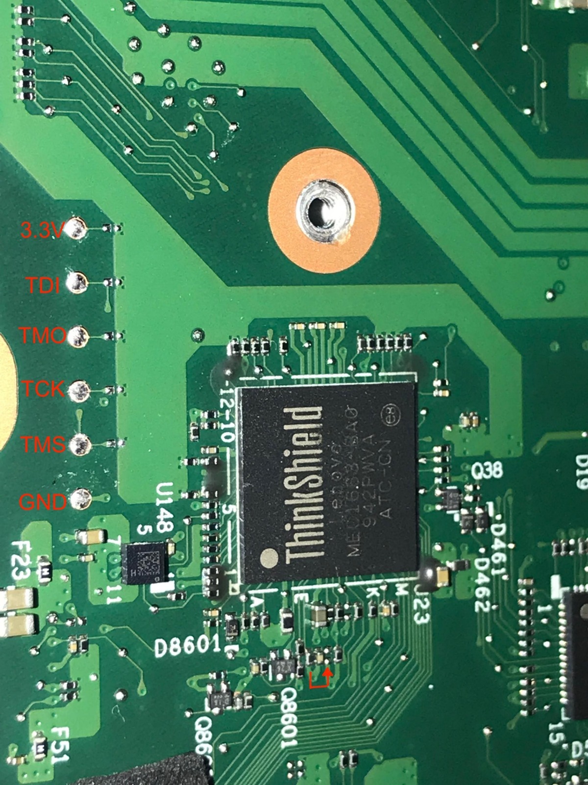 I have a Dell e7440 la-9591p motherboard, no matter what I did on the device, I couldn't start it. It uses MEC5075. On the first page, someone shared the jtag paths for tx390, I searched from the schematic and found the same legs. Can I make this read by soldering it in the same way as SWOD? or with rt809f? or what are its legs? Also, I think the place where it says rp1 is for jtag, but there is a resistor with 103 written on it. Can I remove it, solder the 5 paths and 3 gnds and read it?Comment