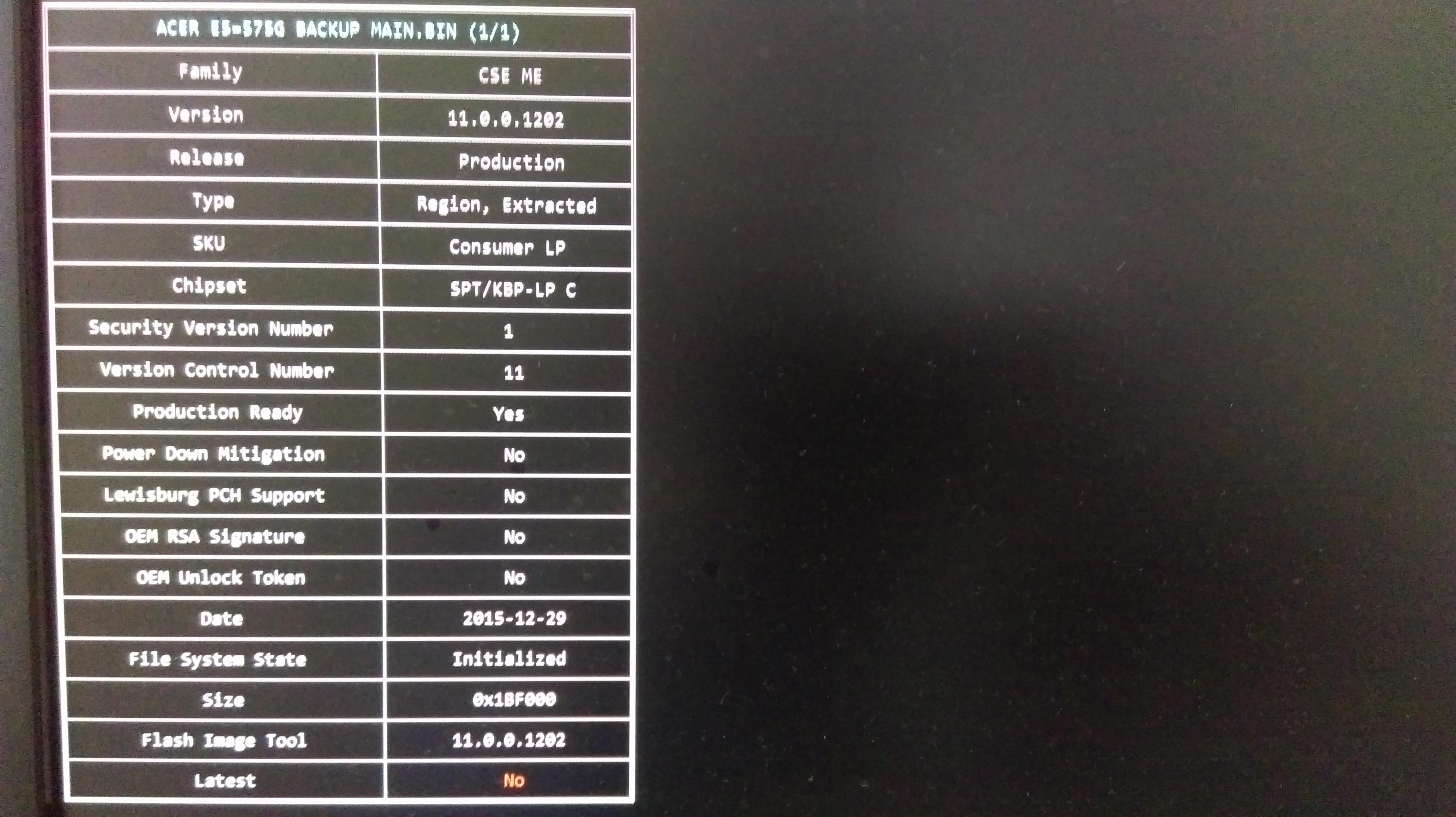 I Have acer E5-575G DAZAAMB16E0 REV: E QUANTA ZAAA.The problem it takes 15seconds to display the acer logo and stock on logo, I have attached the backup dump, can someone please fix this
