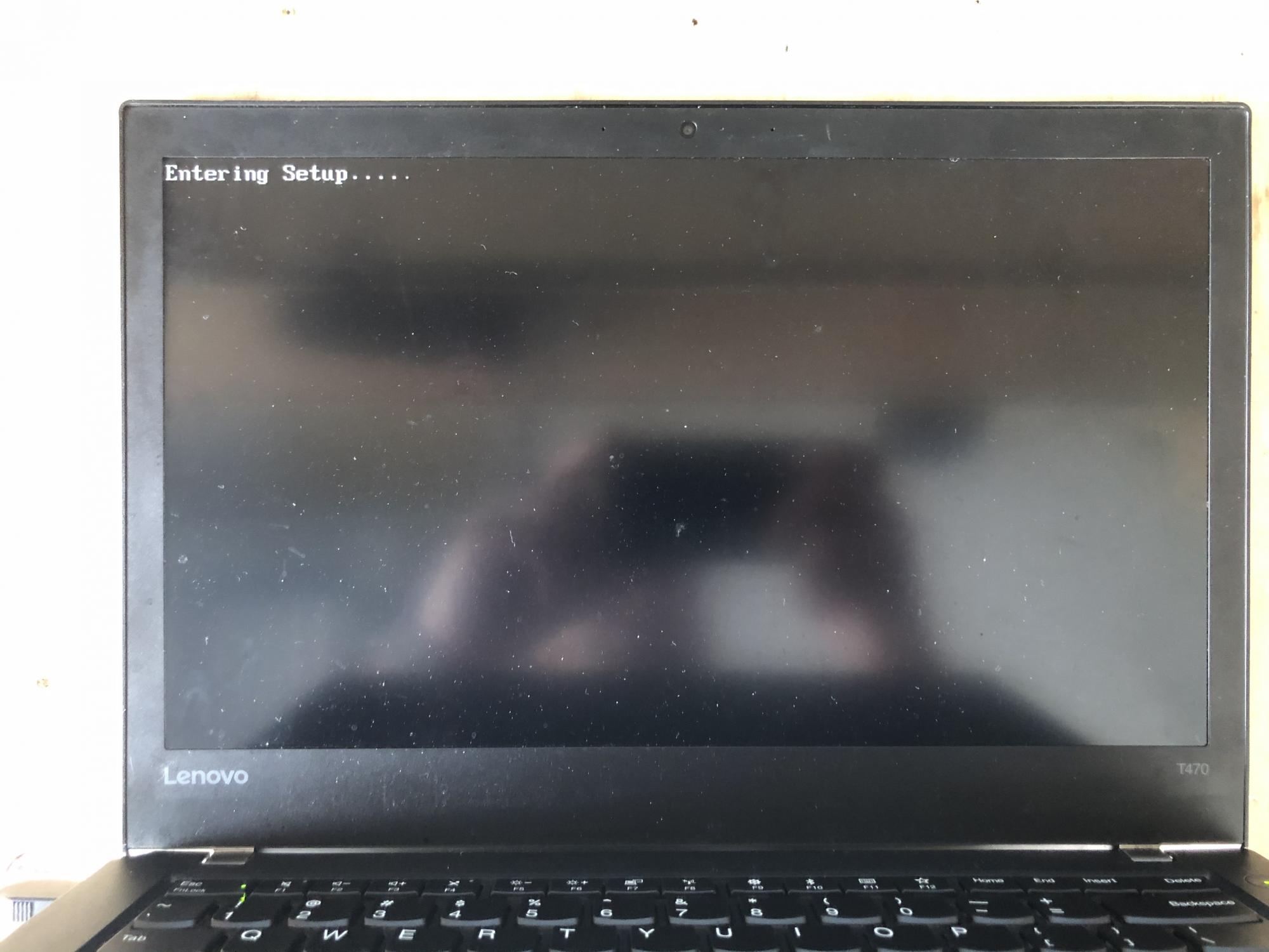 I just entered enter, and it asked to press space a bunch of times, and said to switch off. Turning back on after I press f1 to enter setup it hangs with entering setup.... (the fan turns off whilst)