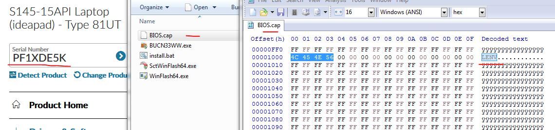 The bios that I attached to the post is a bios downloaded from a laptop, I don't know if it is original. Searching for the serial number in the hex editor does not find it. Could this not be the original bios?Comment