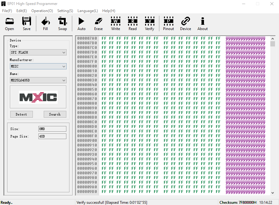 Hello friends, good morning, I recently acquired an ezp2013 programmer, I removed the MXIC chip and put it to run, the programmer program recognizes the type, brand and name of the chip, but when reading it, it only comes out as ff without any code, I did something wrong? because he recognizes that the chip is there but does not read the files inside.
