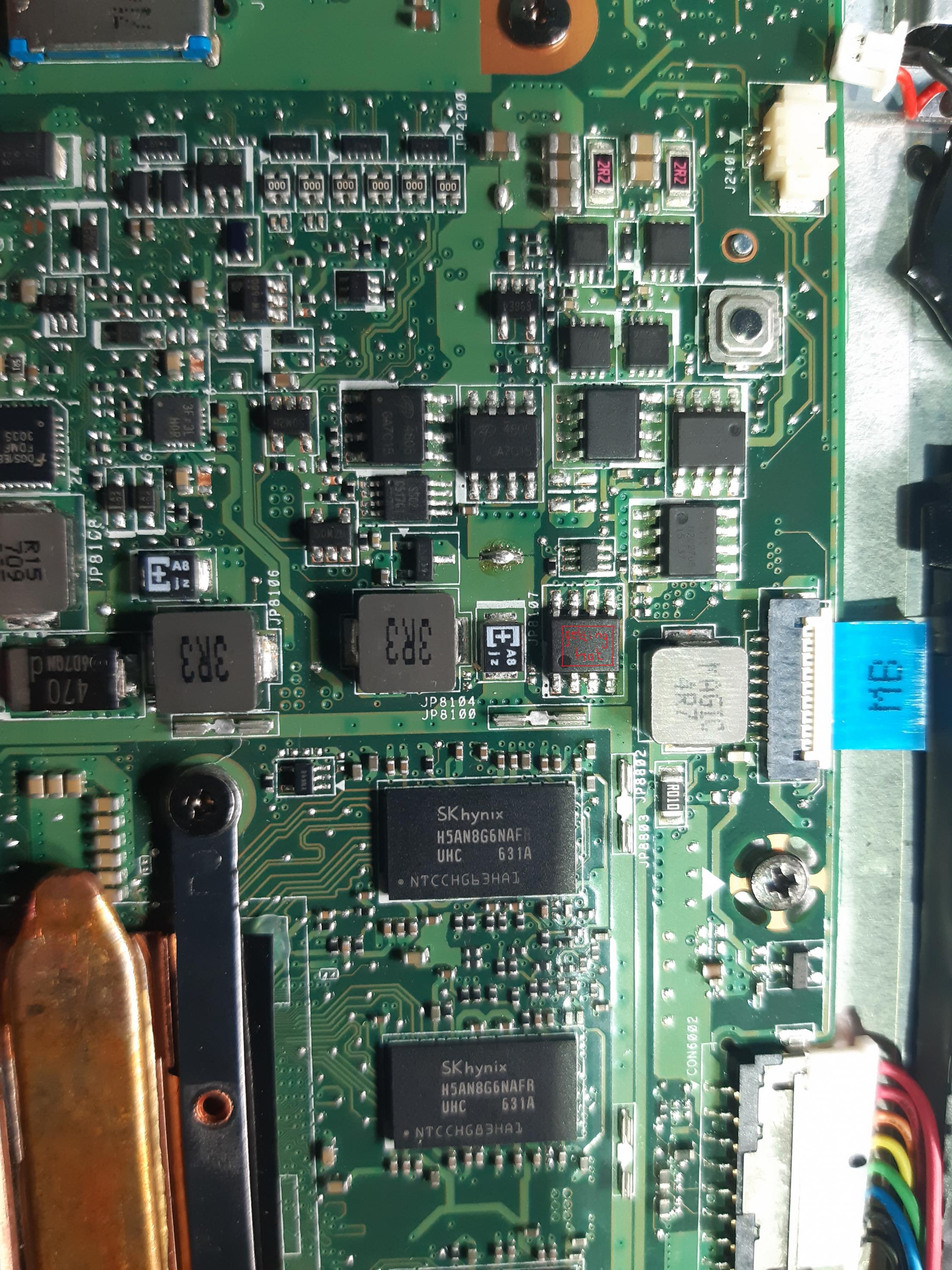 Thanks, but still laptop turn on but screen black.A mosfet near battery getting really hot.Pin 6 and 8 connected to ground, I think only pin 8 should be so.Pin 4 getting 5v, pin 3 - 3.3v and pin 2 - 1.76v. When removed pin 2 getting 3.3v.Could it be the culprit?