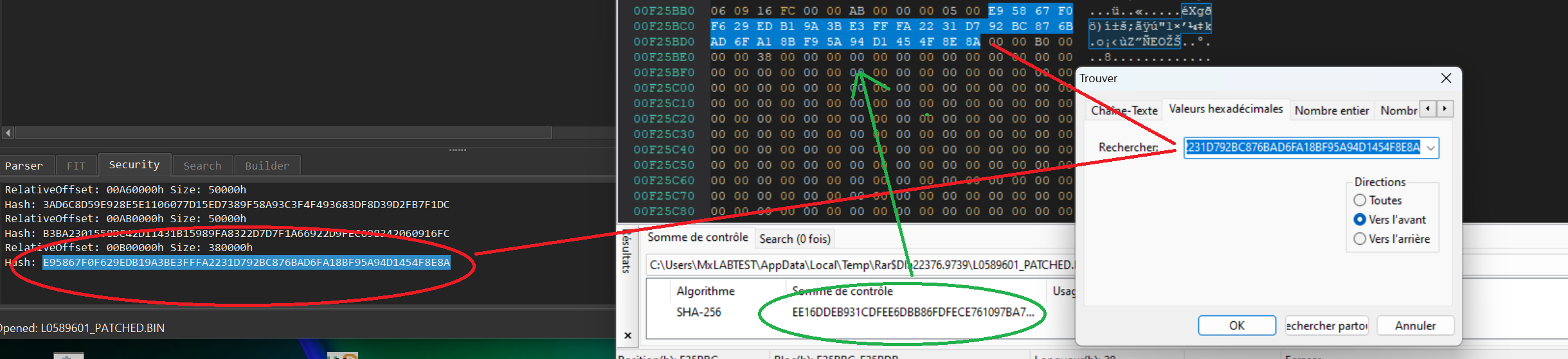 With the help of HxD i calculated the SHA256 of above range and replaced the old hash with the new one (search the old hash and replace it with the calculated one with help of HxD). A boot with manipulated checksum and patched BIOS binary worked. Supervisor password was removed. Thank you very much!Code:FfsParser::checkProtectedRanges: Phoenix protected range [BB0000h:F30000h] hash mismatch, opened image may refuse to boot RelativeOffset: 00BB0000h Size: 380000h Hash: 894F0EC4AAE777028ADC60150B10ECE724FC165E6530129DD6B56E45623192E6