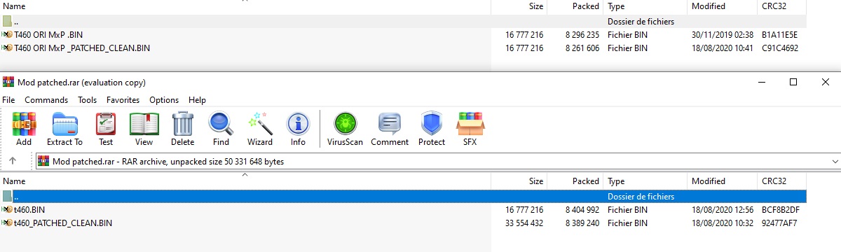Could you help me try patching it using your setup? T460.bin is the original file.