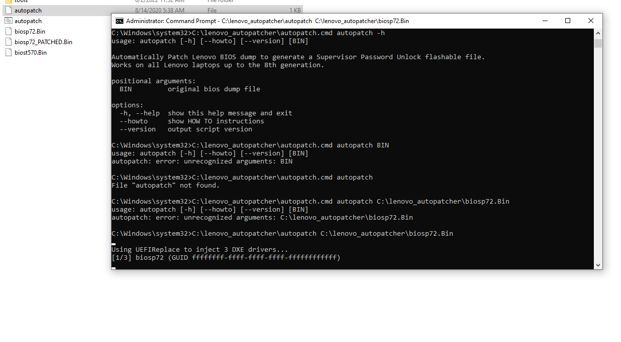 Re: LENOVO BIOS AUTO-PATCHER for Supervisor Password Removal