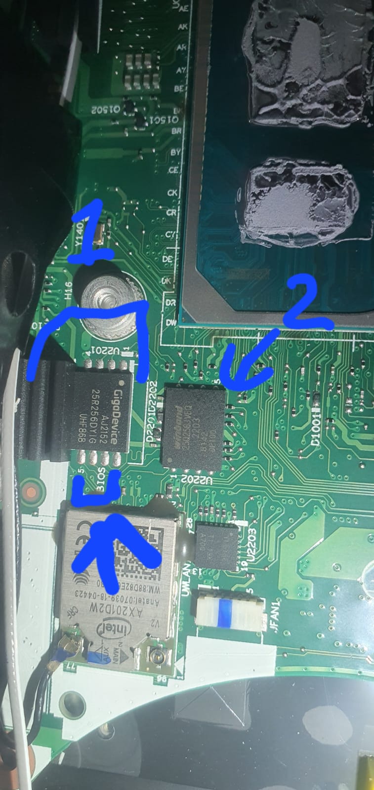 Hi all, I was given this Thinkpad T14s Gen2 (20WN) Motherboard NM-D362 EC:MEC1503 it has administrator password, and I found these two chips, the question is can it be unlocked, flashed?