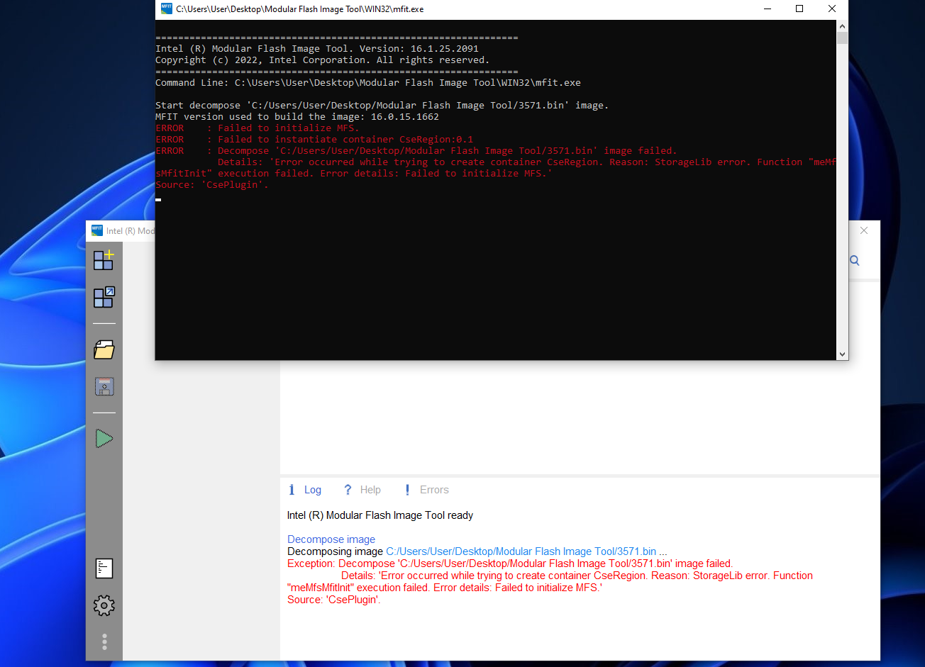 I use Intel ME System Tools v9.1 r7 package and FIT, but no matter what I do I will always get an error when opening the BIOS dump in FIT. No idea what I could be doing wrong. Error number 22.