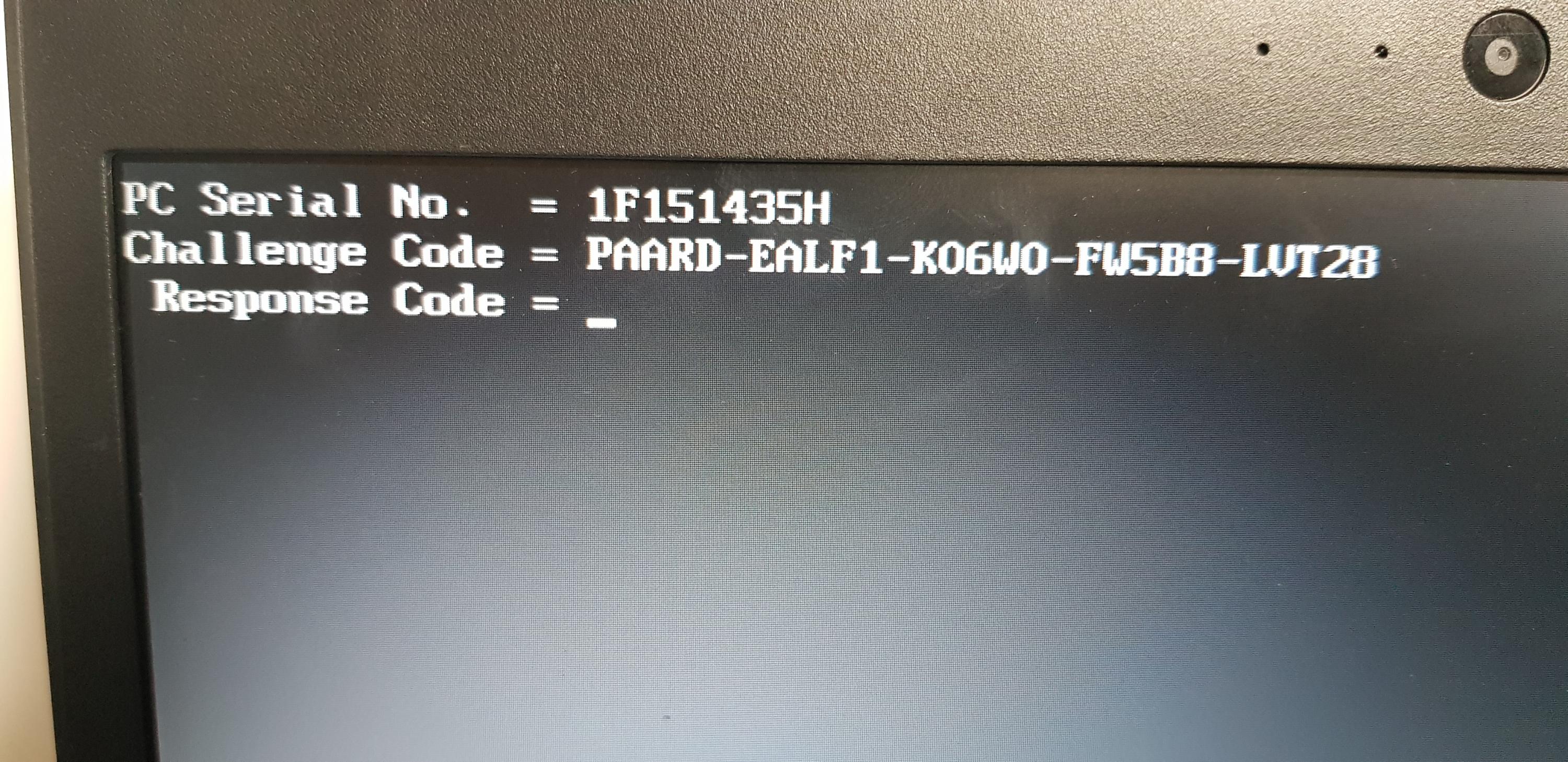 Hi all, need your help. Got this computer and can't install OS! Looking for the response code. Thanks in advance!