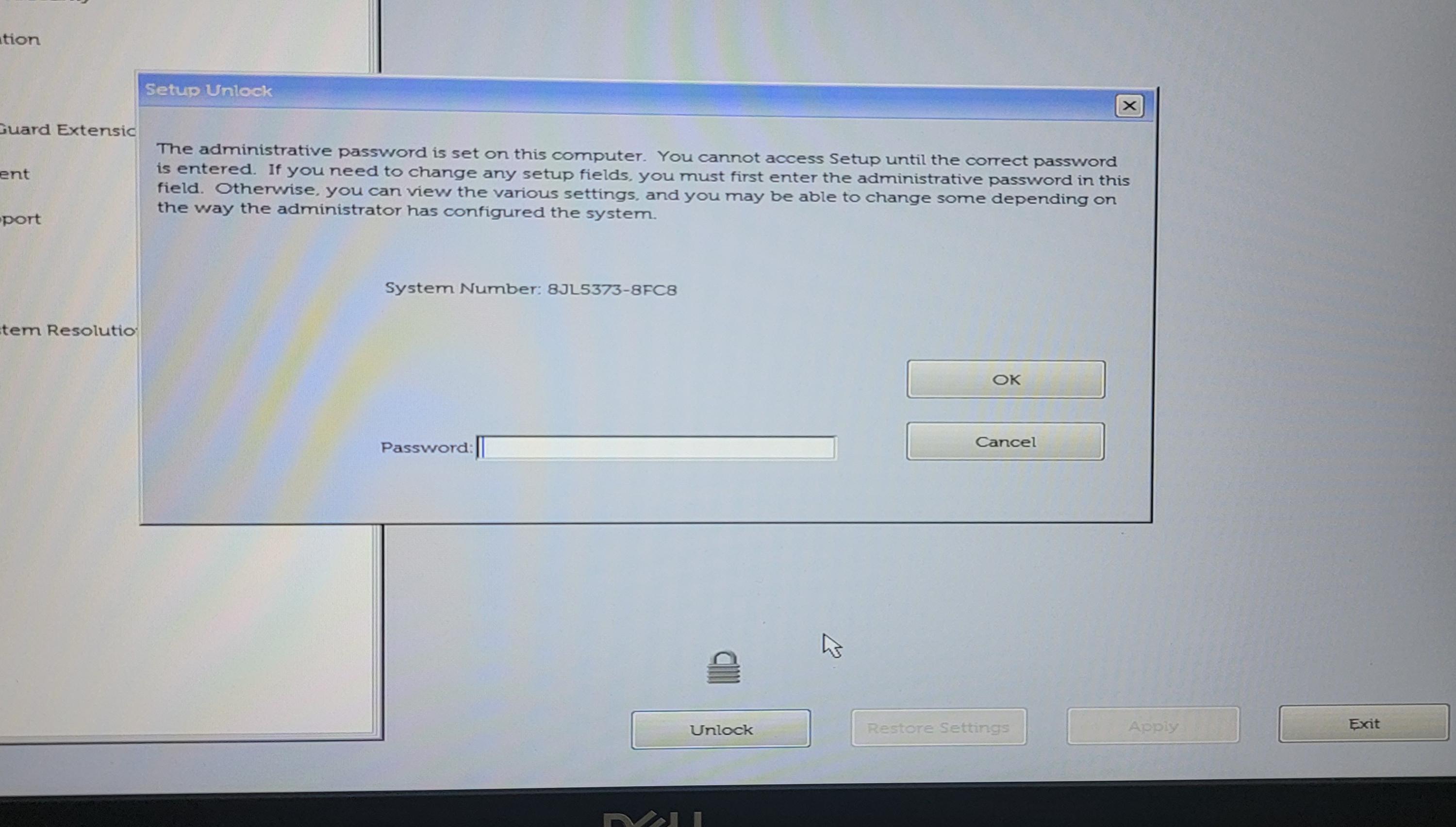 Re: Dell Latitude 5410 Bios Password 8FC8