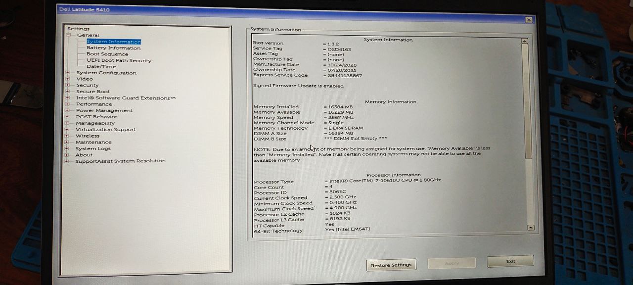 dell latitude 5410 i5 10 generation service tag 1WTH4D3 bios version 1.4.3