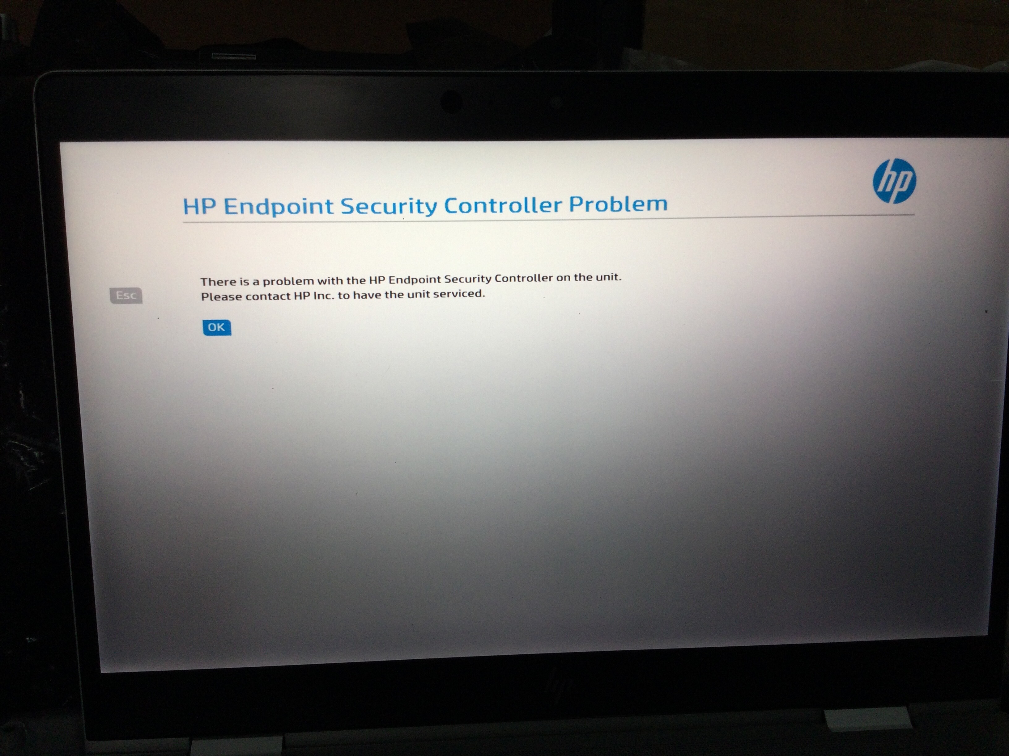 first boot press f10 apply factory defaults and restart, 2nd boot reset security settings to defaults and exit.