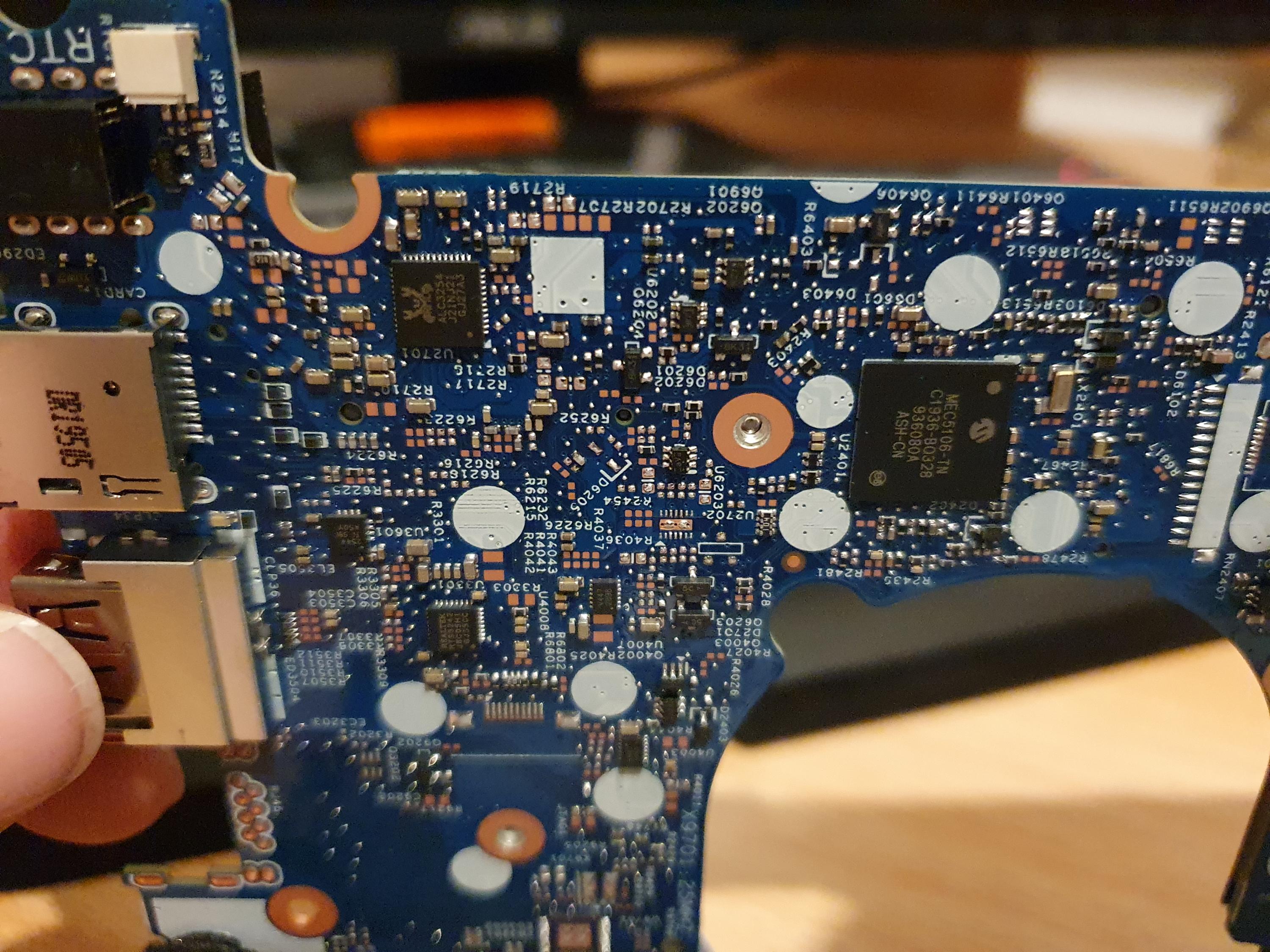 i look between the fan und the Battery but here is no chip, can the chip mounted on the other side of the Board ?