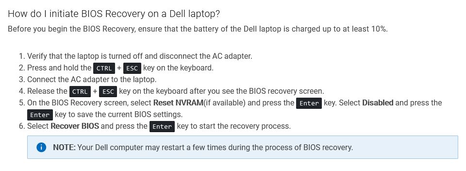 Was trying to fix a Dell G3 3579 that had slow kb and no battery charging issue after BIOS update to v14. Tried loaded v13 BIOS using /forceit command (since battery was under 10%) which resulted in a bricked computer. A dump of the BIOS is attached.