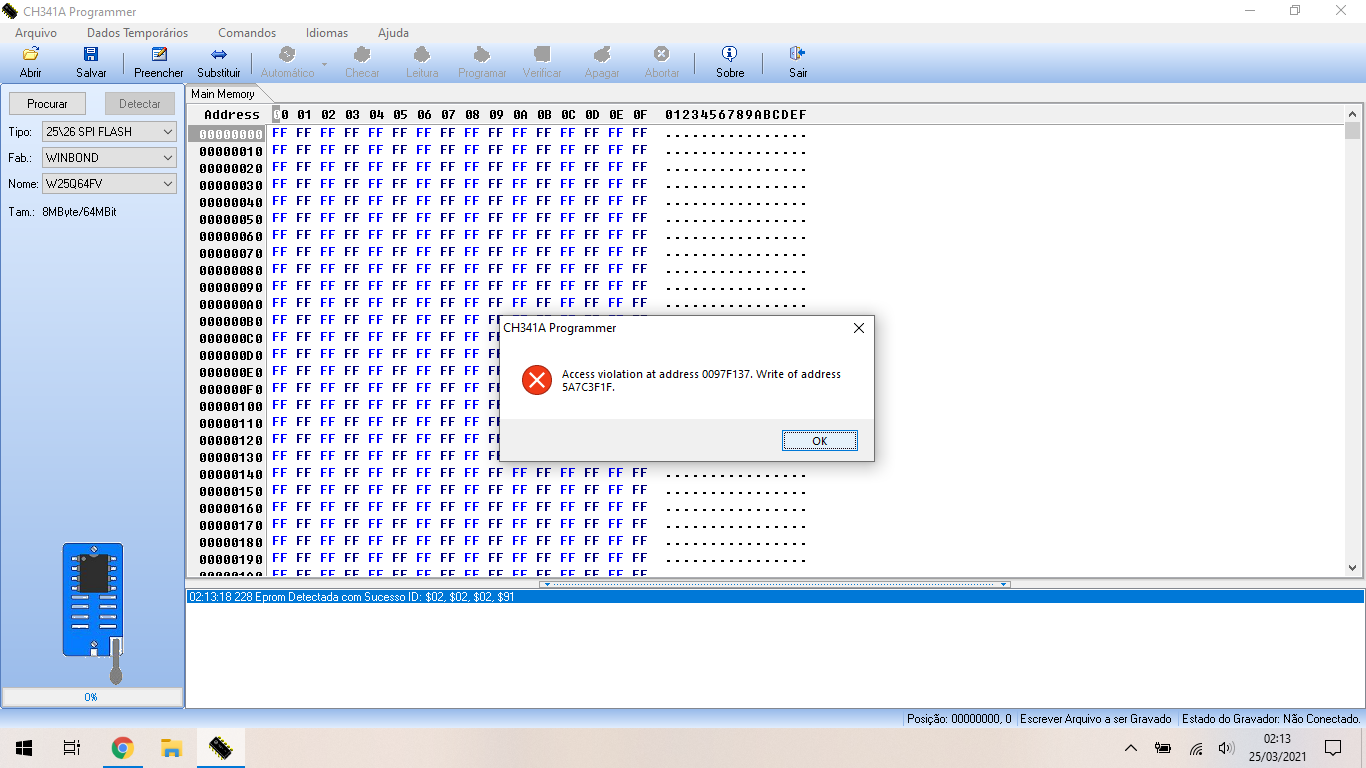 CH341A_V1.30: When I click detect it gives an error (send photo)