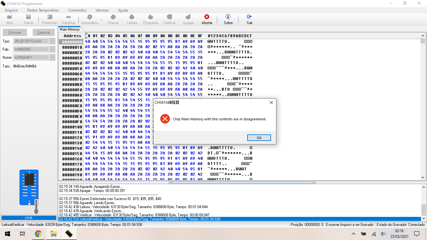CH341a_V1.34: When I click detect, more information appears, but when clicking check it gives an error (sending photo)