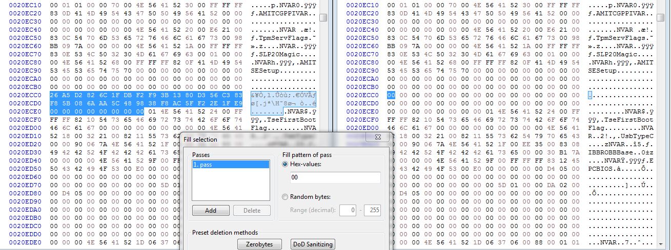 any helpopen the locked and unlocked bios from post 1 and 2 with a hex editor,use the "file-compare" function to see the differences. All you have to do is zero fill the areas in the amitse area (leave the 01 at the end)