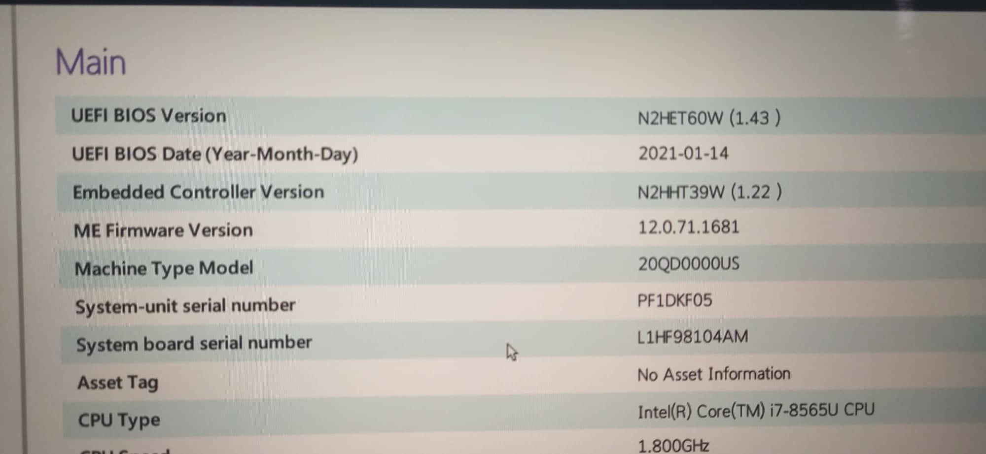 I boght a new motherboard , Lenovo X1 Carbon 7th Genw Intel i7-8565U, 16GB- 01YU368