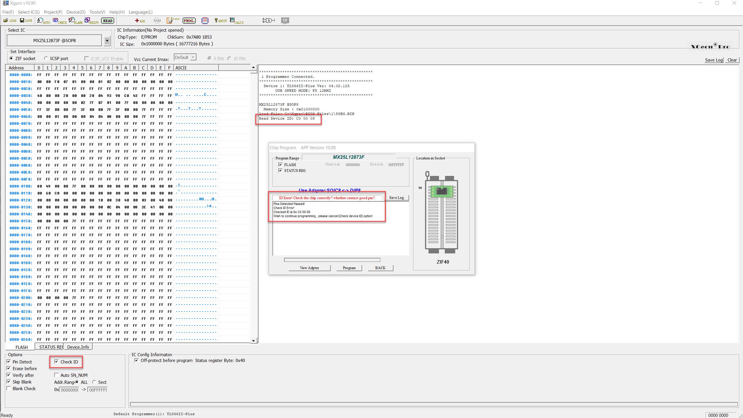 When I go to write the chip I get: ID error! Wish to continue programming, please cancel [Check device ID] option!