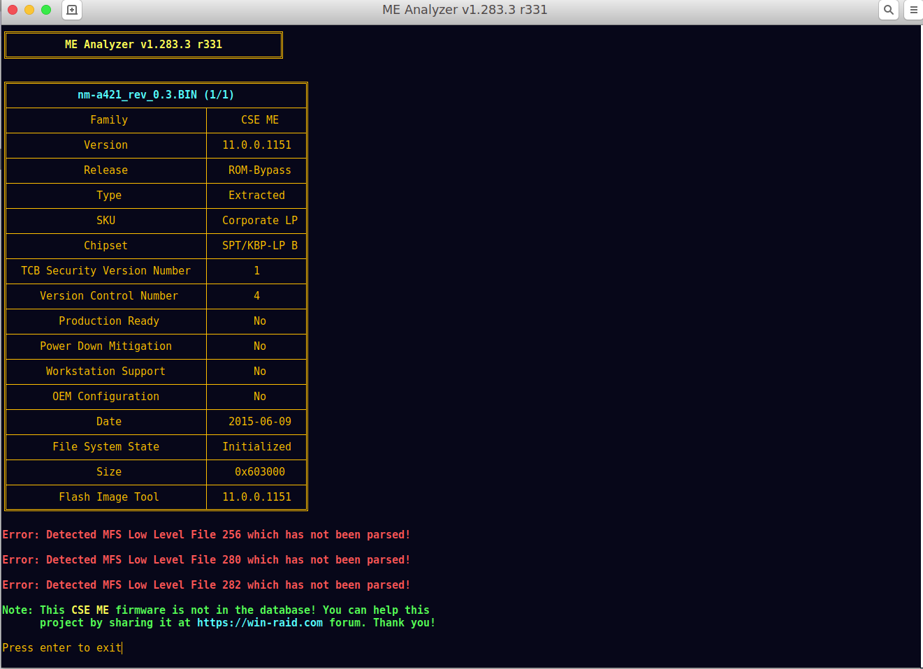 Would someone please be able to look at this BIOS? The machine works fine but takes 15 seconds to POST and the MEI Version is blank in BIOS. Intel ME will not install. I had used lenovo auto-patcher to remove supervisor password. That worked and I have since updated the BIOS to the latest version. Thanks in advance.