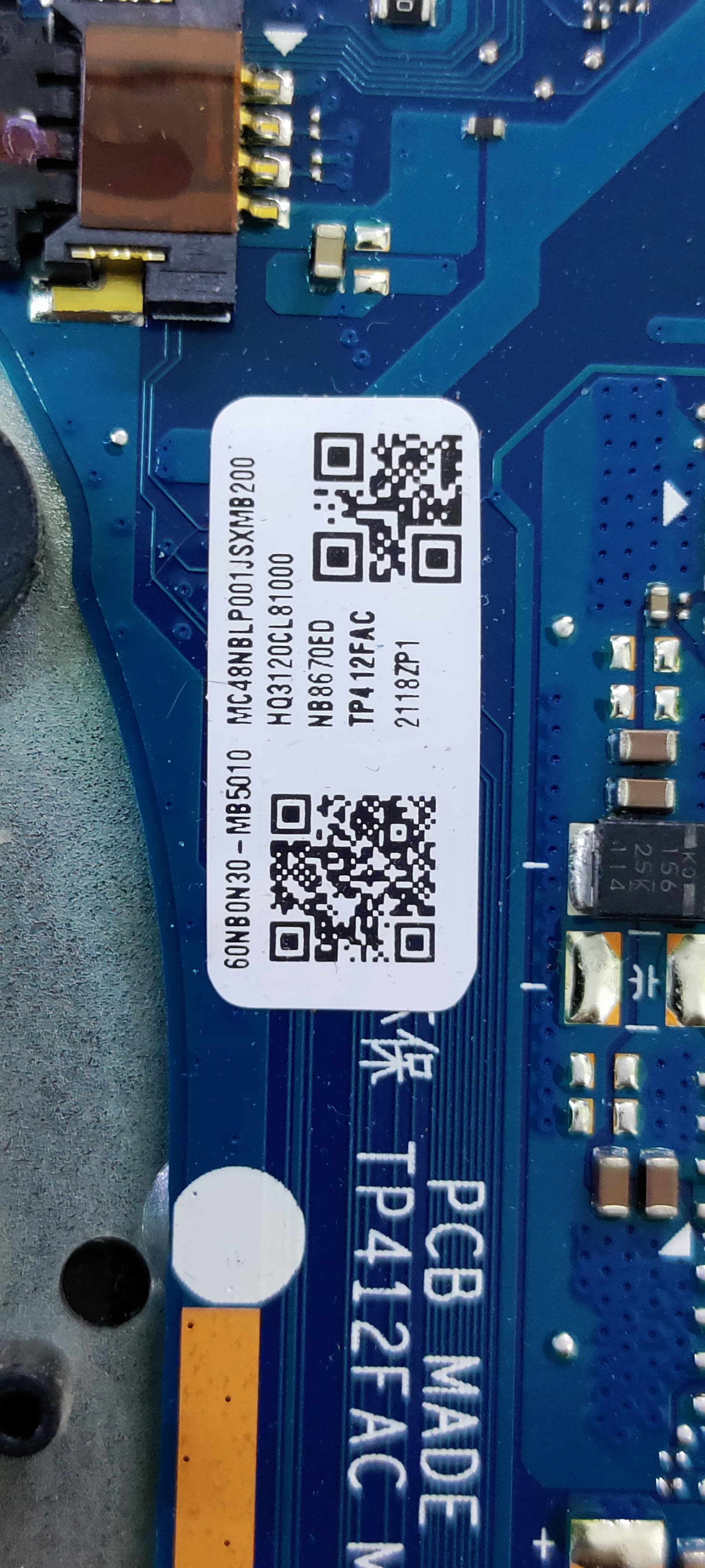 S No: L5N0LP00L939218 Laptop Model # TP412F (On the Sticker 60NB0N30-MB7110 KC49NBLP0006C9MB 200 HQ3120BR88000 NB8670HA)Attached Filesif you find these attachements useful please consider making a small donation to the site