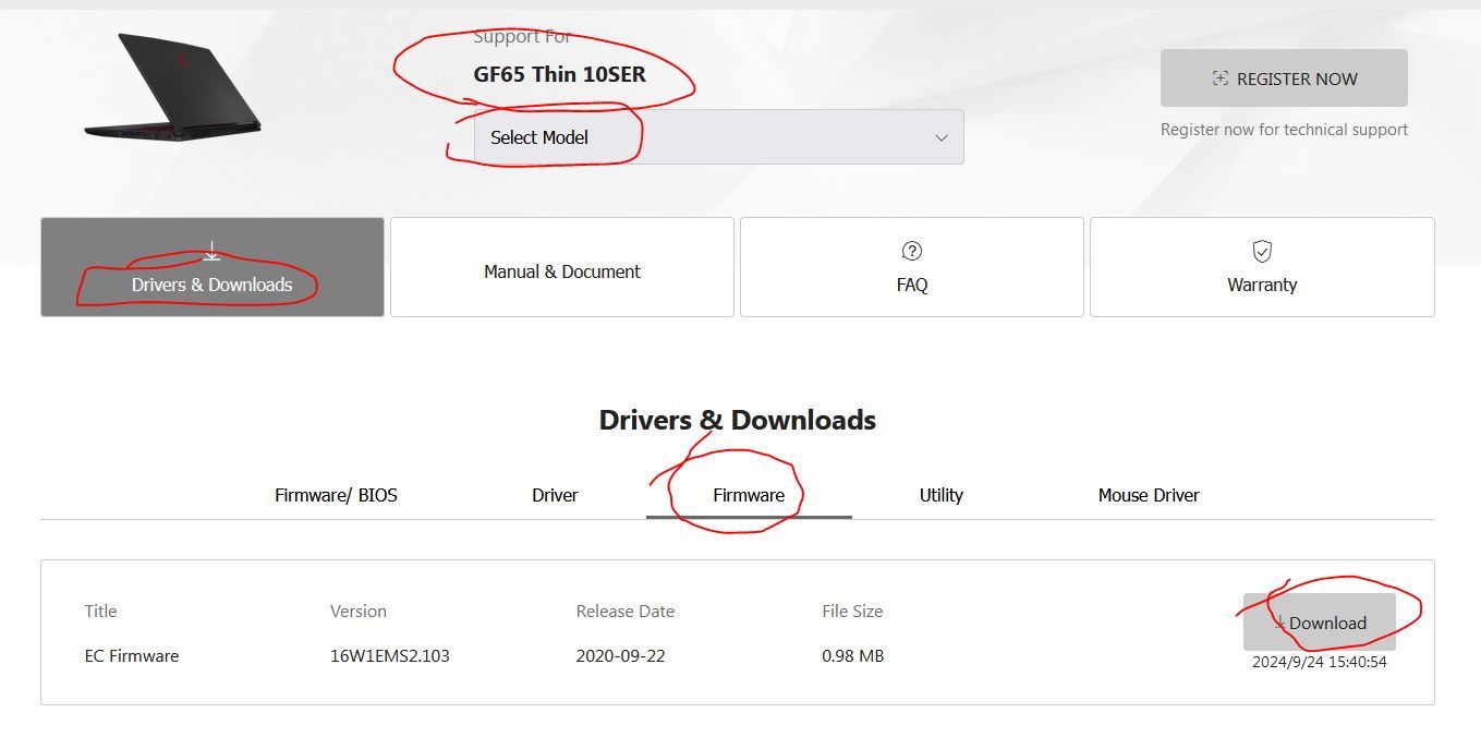 Can somebody provide me with the bios file for the msi gf65 thin 10ser.