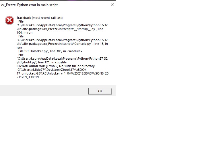 issue with RCUnlocker