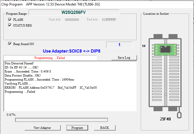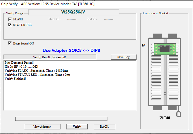This is my first chip (ever) that I am reprogramming so please be patient. I pulled a Winbond 25Q256JVEN (2202) (6141) (GM400) chip out of an HP Elitebook 850 G8 hoping to wipe the Admin password from the bios. I am using a XGecu T48 [TL866-3G] programmer. The chip did not work with any of the connectors I had so I had to use the test clip that came with it. I was able to READ then VERIFY the chip. I can see ASCII info that was added. I then saved the bios .BIN file and moved it to the RCunlocker.exe. But...I keep getting the same error, "Wrong Chip. Try reading and unlocking 16 MB chip." I am not sure what to do to get around this. I have tried using both "W25Q256JV SOIC8 and W25Q256JV SOIC16" but with no luck. I appreciate any help or input you can give me.