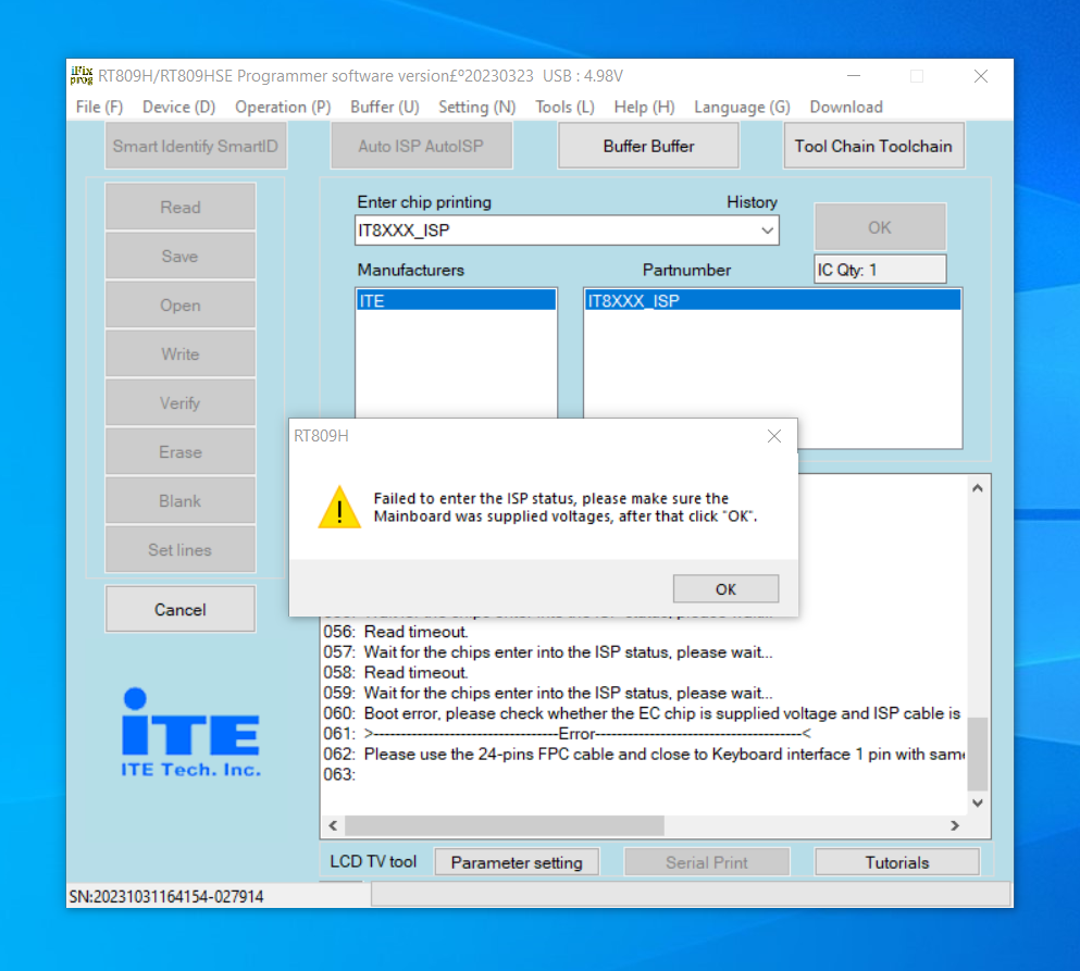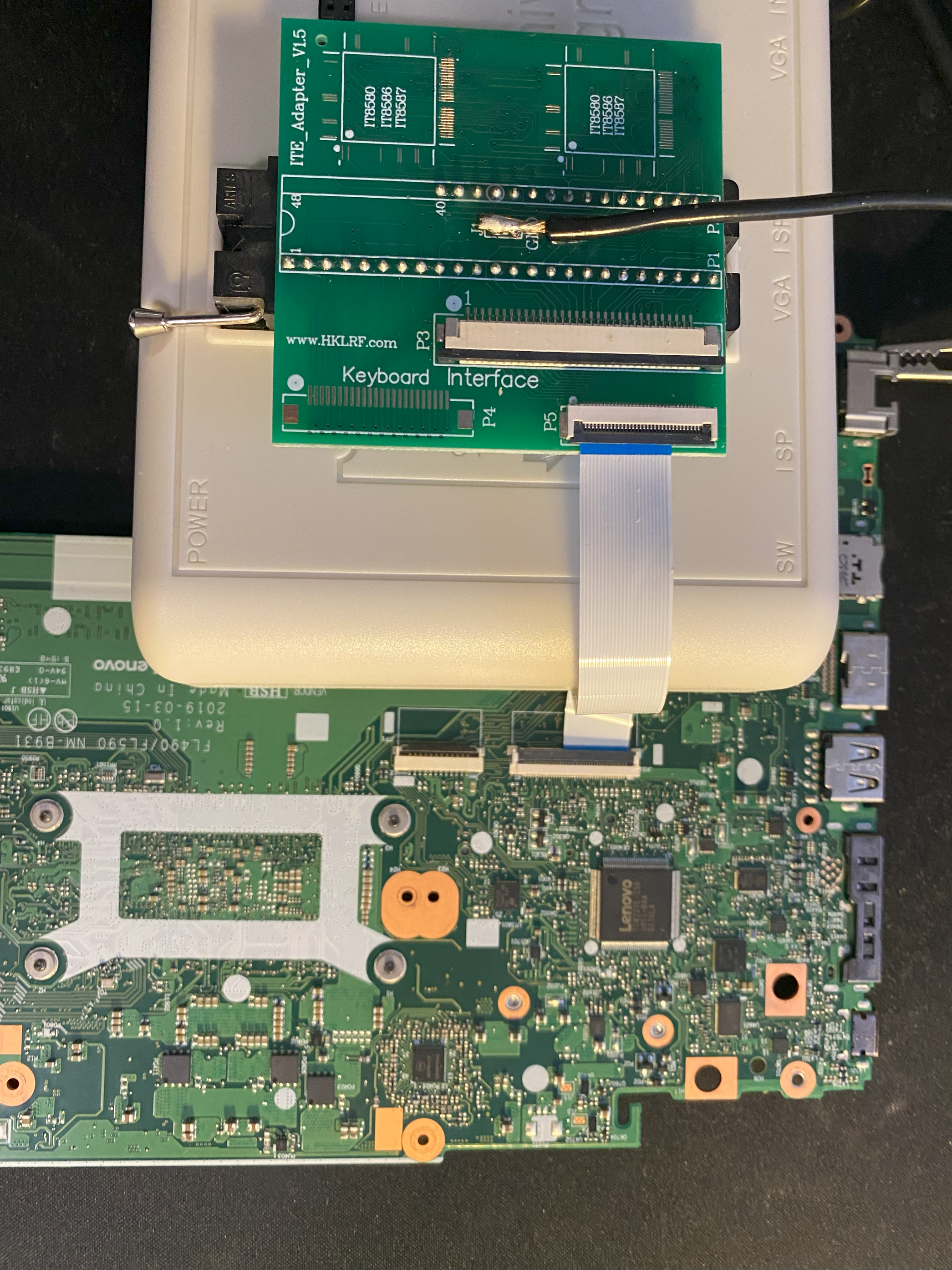 Unfortunately I get a error message when I try to read this chip. I´m curious if this chip is really not programmable via the keyboard connector. If I measure with my multimeter I get a connection between the EC and the pins on the KB-connector...