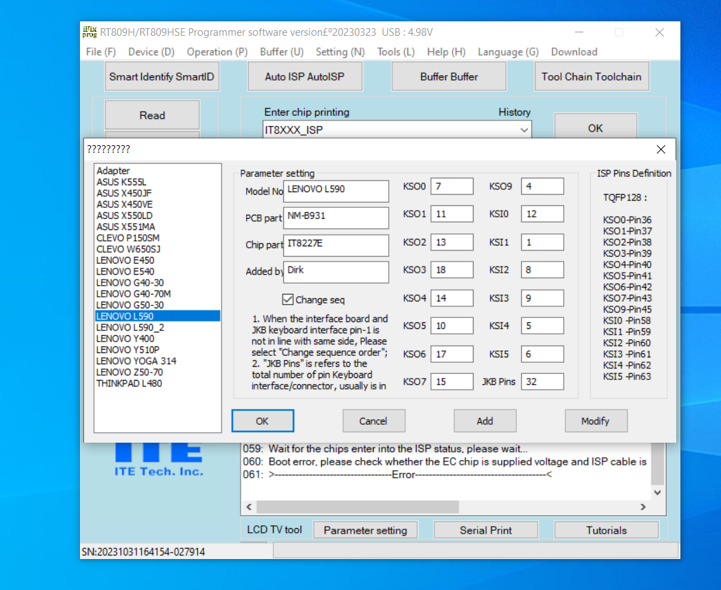 Hi, I´m trying to program the IT8227E with a RT809H programmer on a Lenovo board NM-B931.