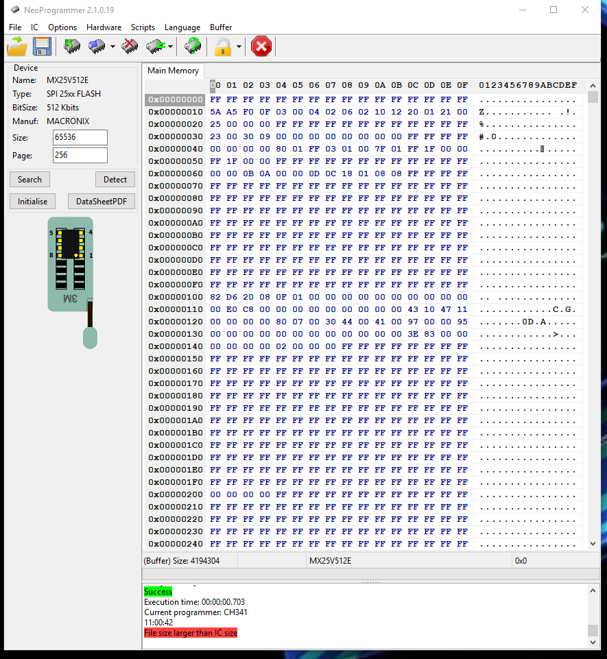 The chip you selected is only 512kb .Find the bios chip,then don`t auto-detect select it manually,look at the part number on top of the chip. Make 2 backups,don`t flash anything yet
