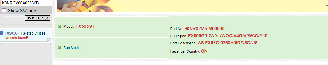 Serial number K9NRCV00A03536B belong to FX95GT .