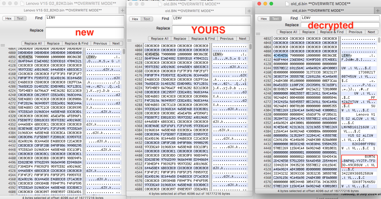 Here is my Backup OLD BIOS. Tried copying the DMI : 1000h --> 2FFF But those are valued from 1000 FF only I assume this is corrupted also