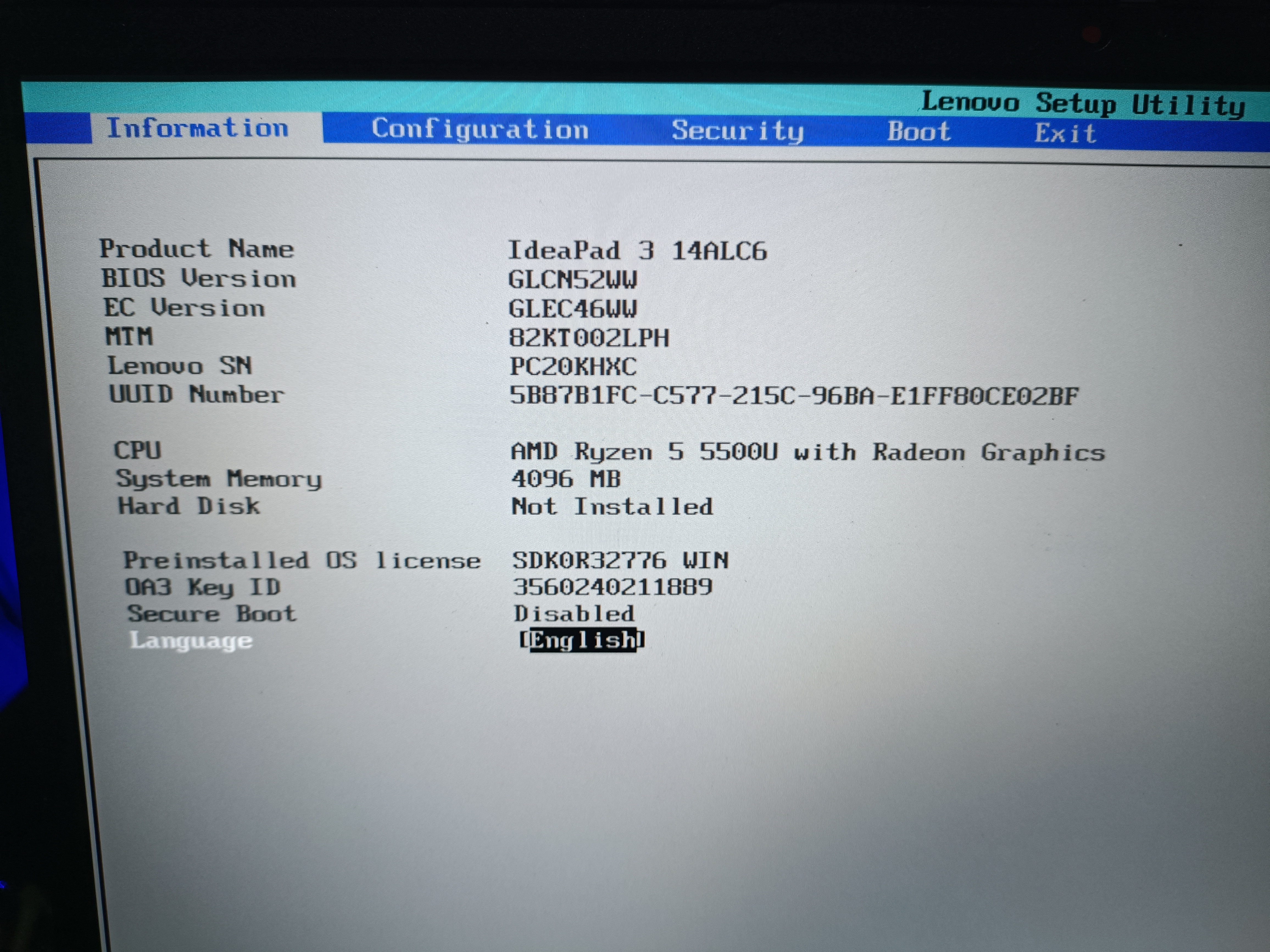 Model: V15 G2-ALC Laptop (Lenovo) - Type 82KD
