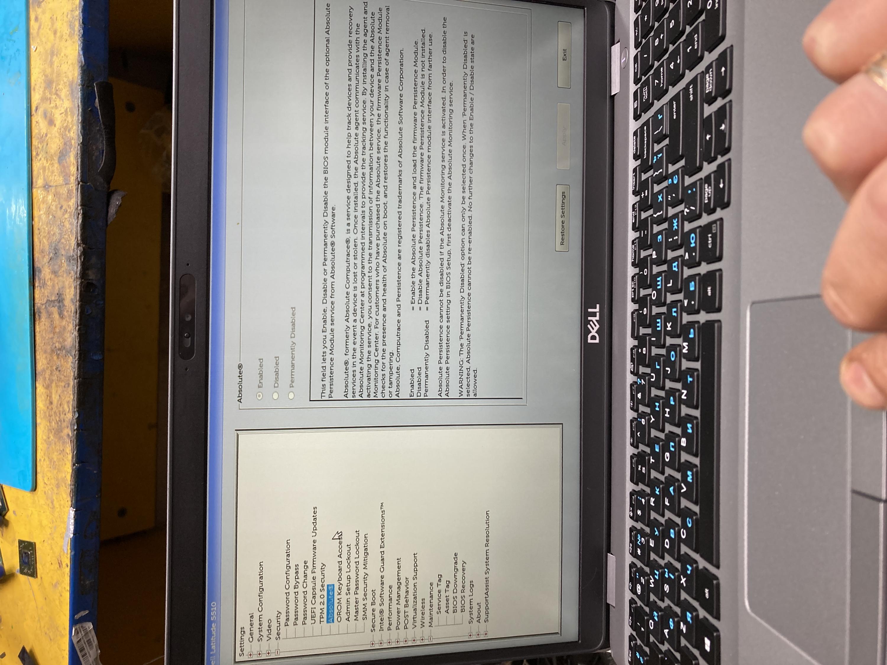 in this bios enable, disable and permanently disable is not active and i cannt change