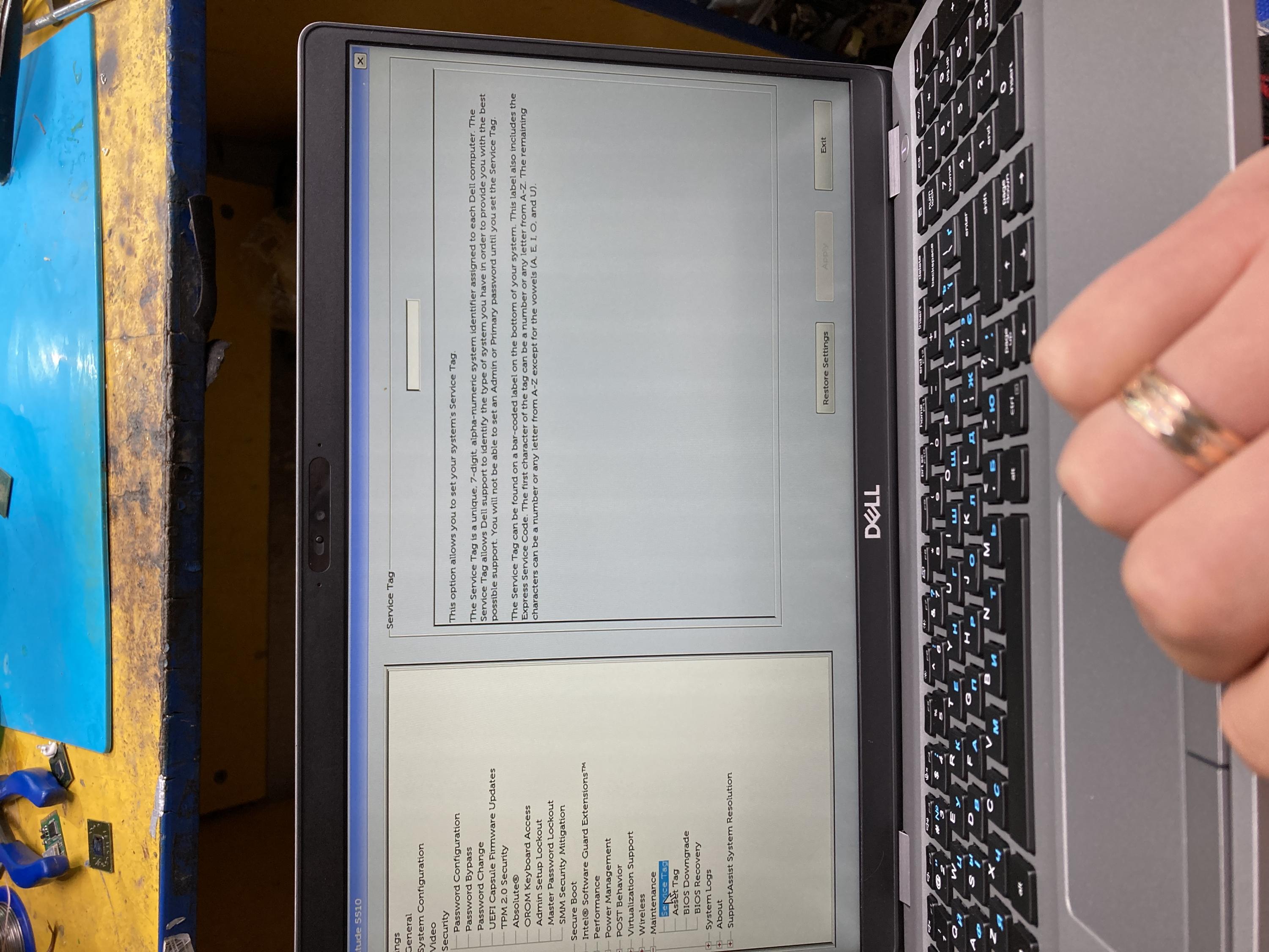 with new bios you had to deactivate Absolute, write service tag, save, then press alt+F to exit manufacturing mode.