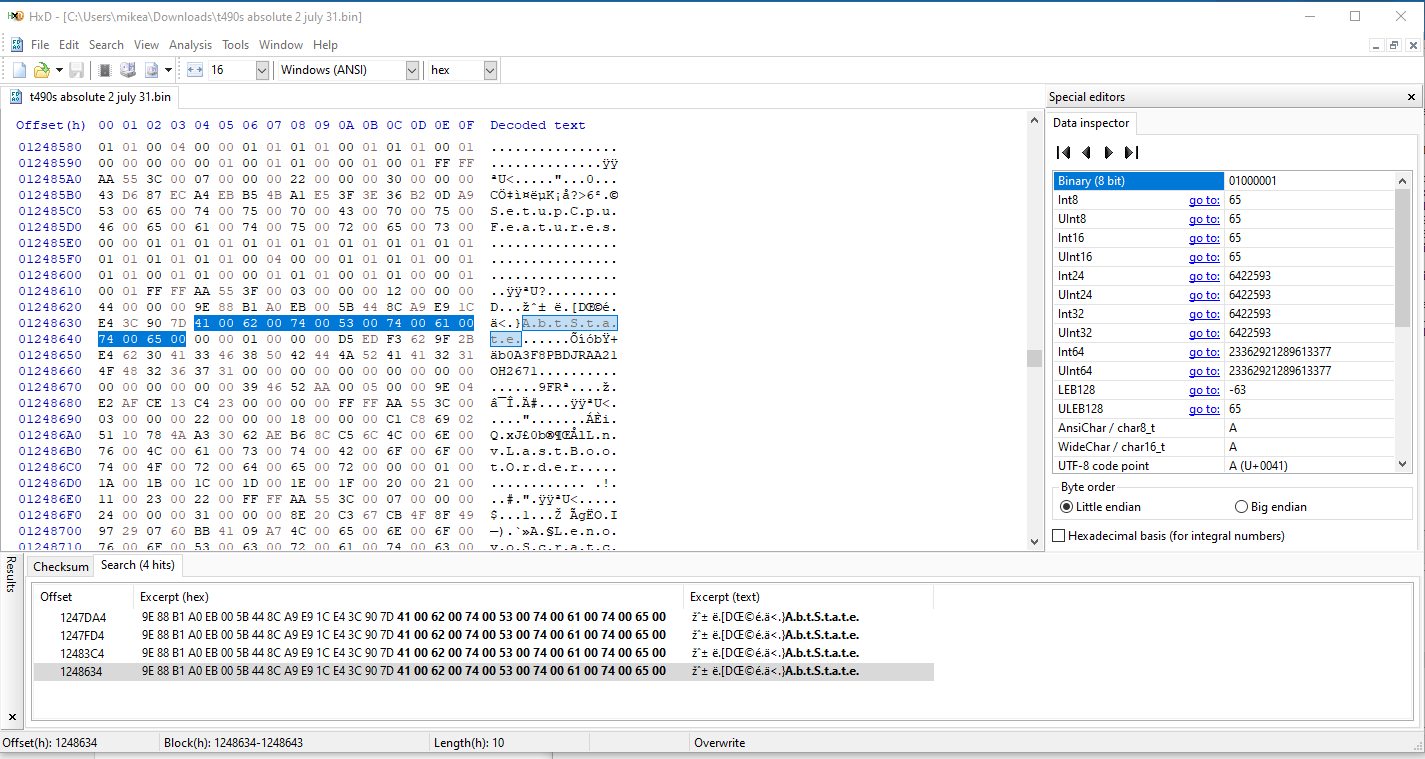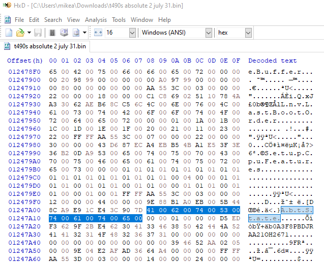 This was where I am puzzled as I looked at the original BIOS file through HxD and what I though was the enable and disable for AbtState, but it already has AA553C instead of AA5533F. I thought this was for another option that was mixed in. Under UEFItools it showed it as it should so this is why I was getting a headache.