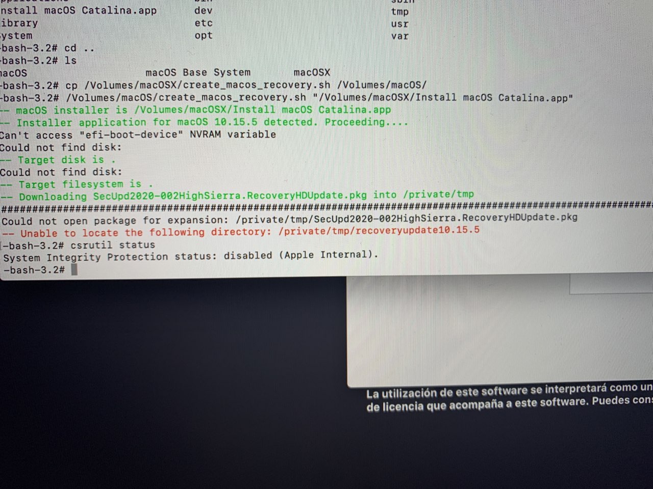 terminal csrutil disable. gives an error message