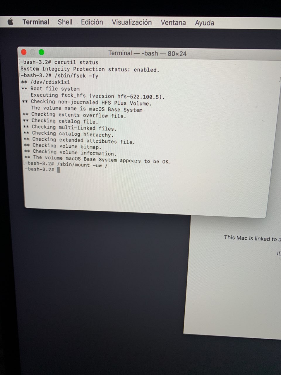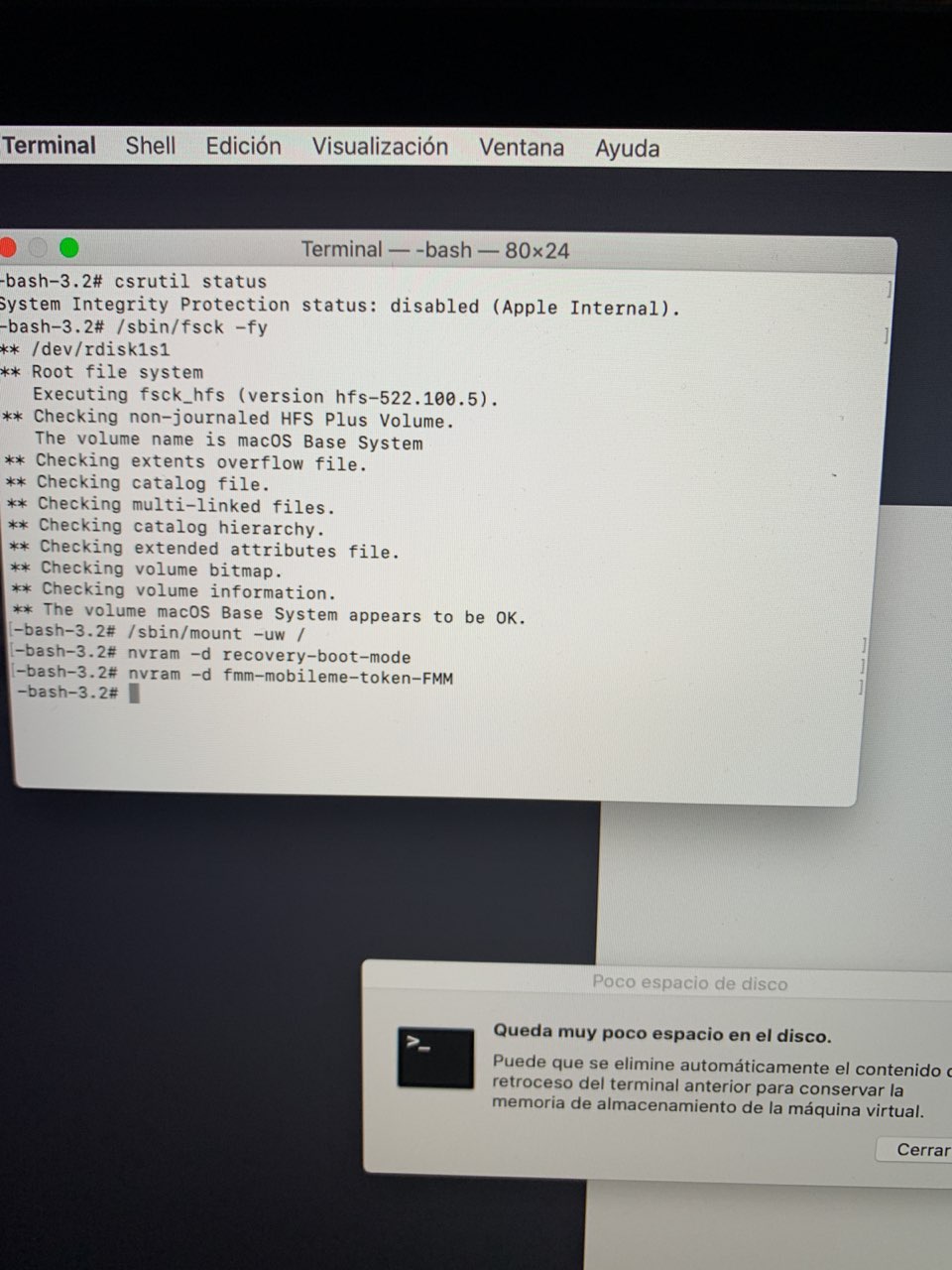 recovery mode and terminal csrutil disable