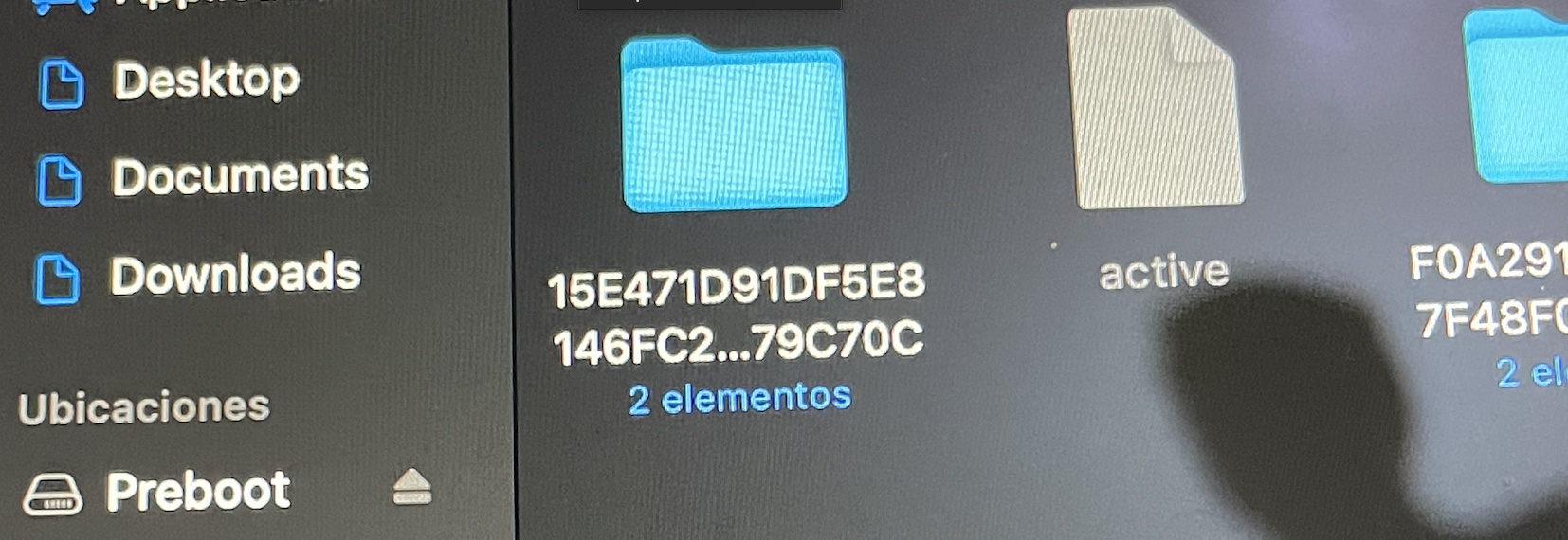 I used the hidden menu on the unlocked M1 and found that the preboot drive had 3 files and the locked mac only had 2.