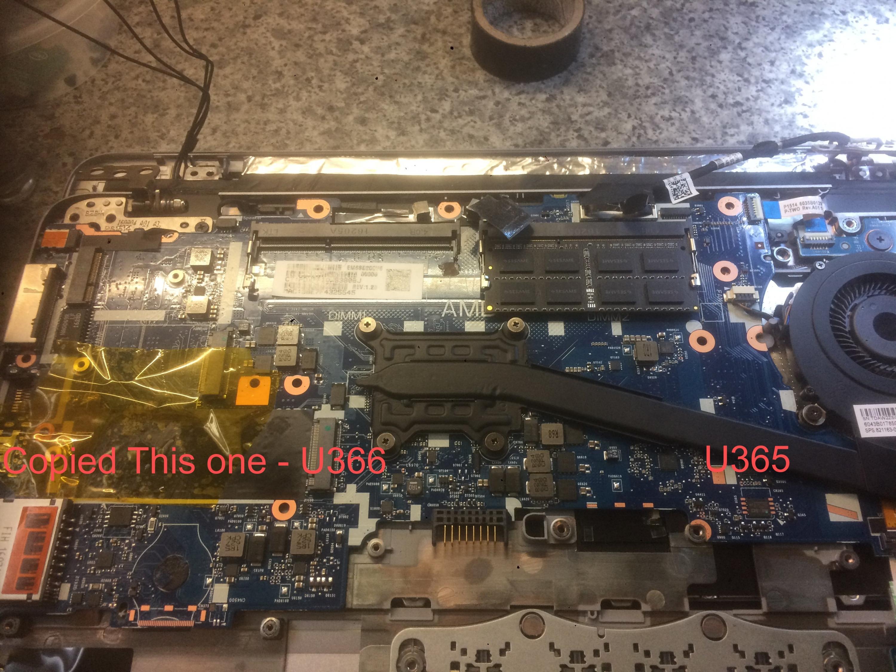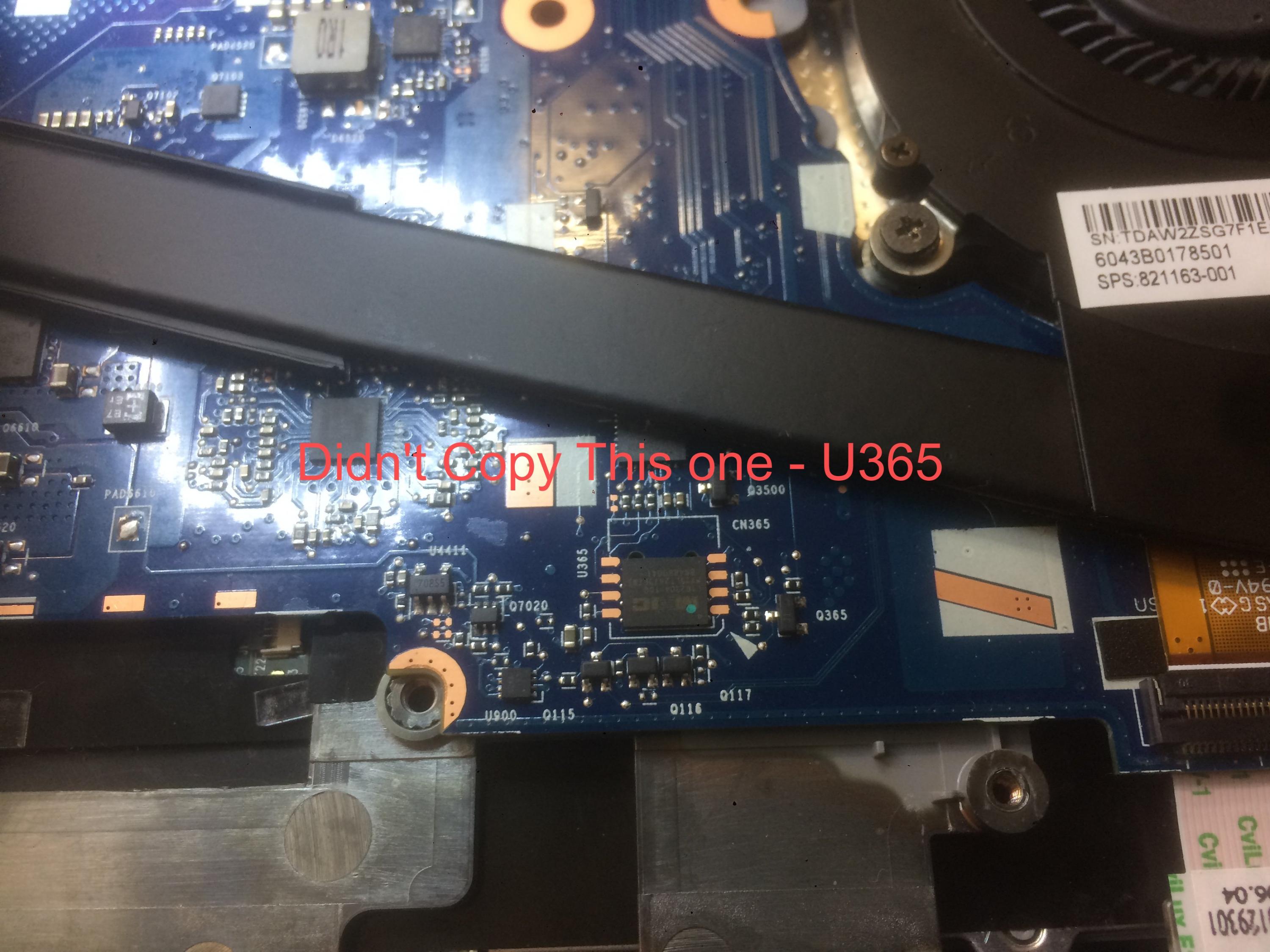 I un-soldered the chip with the hot air station, I took 2 copys from the chip, verified both with total commander as advised in this thread and wrote back the unlocked one and verified. The laptop posts fine with the unlocked version. Sorry for not zipping I thought it was a problem with the forum not letting me attach the file. Have I copied the correct chip U366 next to the bios battery. There is another at the other end of the board, U365. How can we know normally without a Schematic? See Pics. I could try the other one but I don't want to take un-neccessary risks unless I'm certain it is. The bios battery and its socket were already ripped off when I opened this laptop as well as the ram slot.