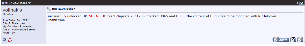 Hi i got an HP Elitebook 840 G1 that has a bios password. im reading the thread and i need a CH341a programmer to dump the bios? after that I can use RCunlocker to generate a dump withouth a password. am i correct?