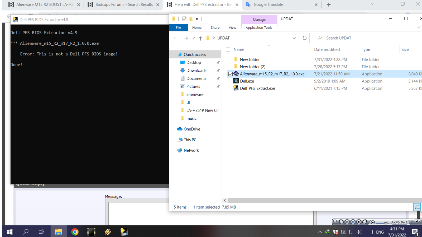 Hello,I'm trying to extract dell BIOS from the firmware update from Dell support but each time i drag and drop the BIOS on Dell PFS extractor,I get an error message.