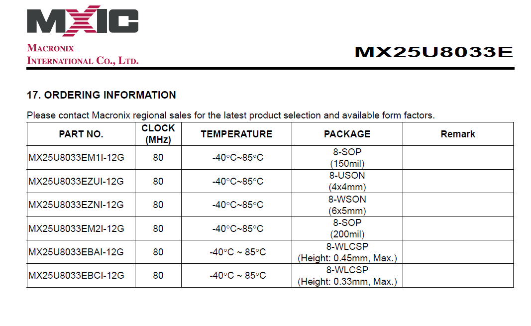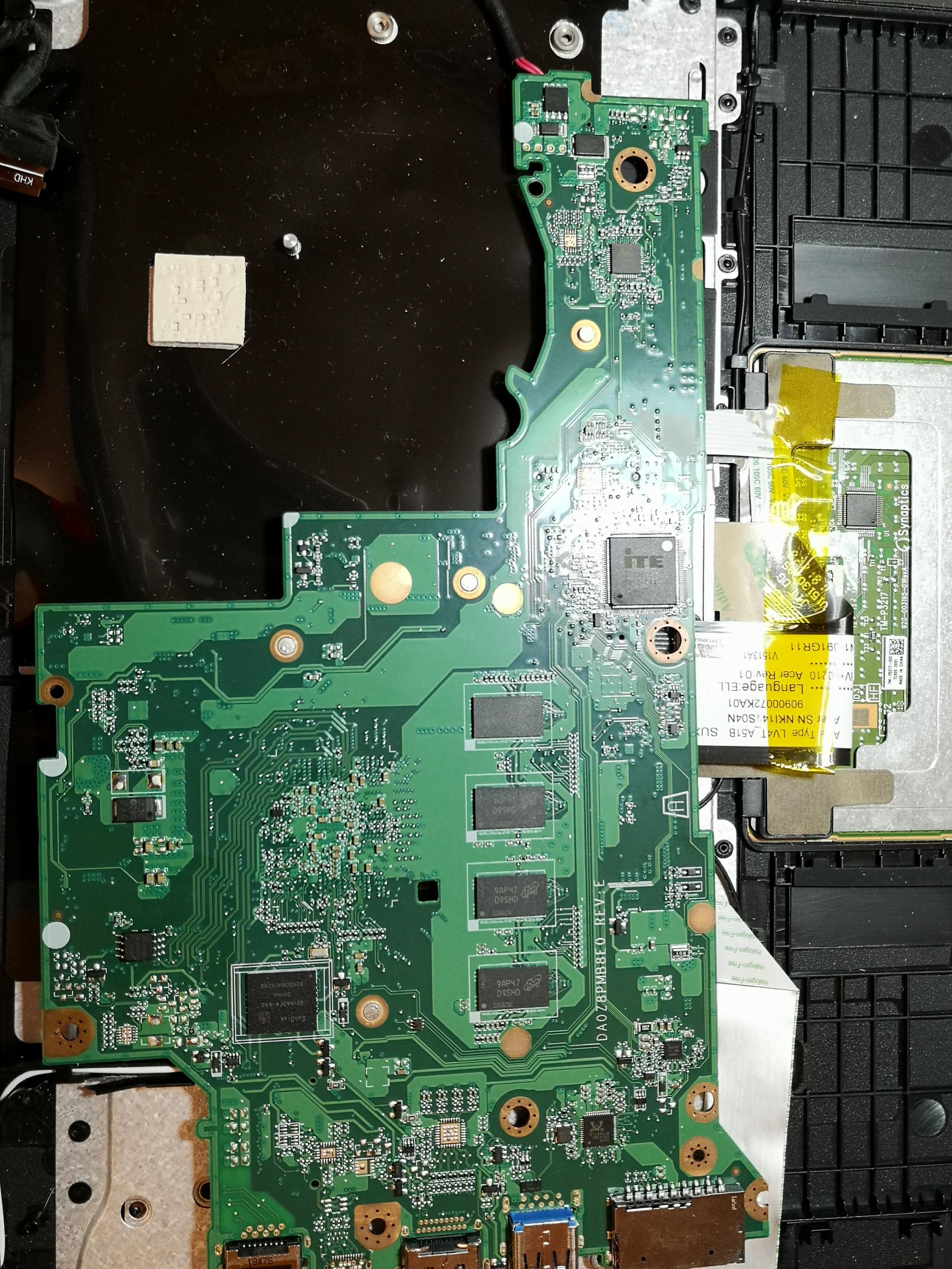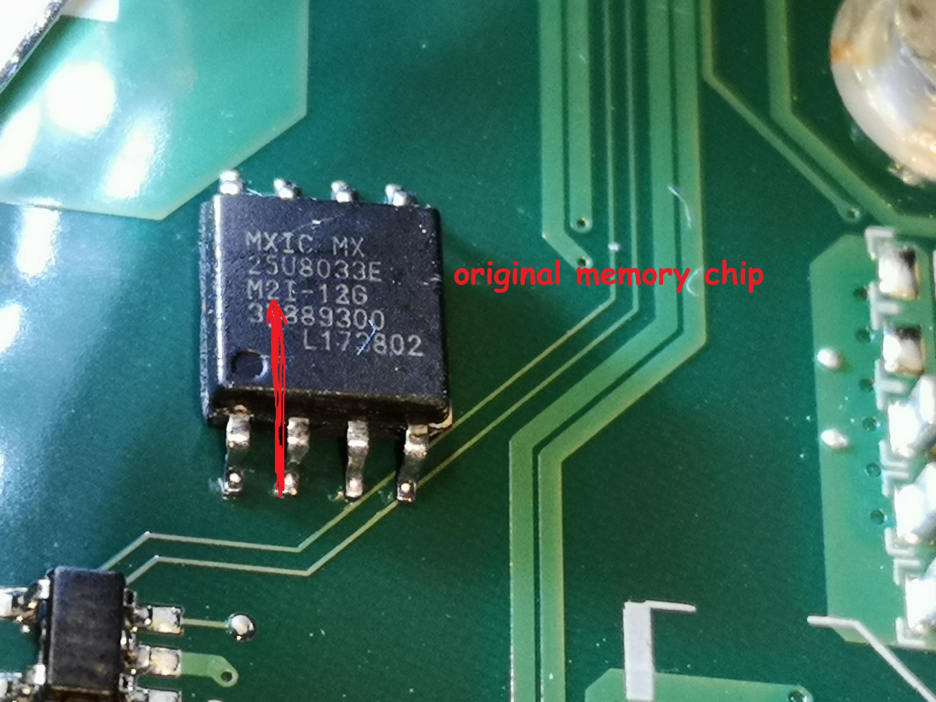 I have the Acer A114-31-C6QA, and motherboard model is the "DA0Z8PMB8E0 REV-E". The laptop doesn't turn ON (only power ON light is present). The 5V and 3.3V are present. I beleive that the problem. First I tried to re-program the bios chip "MX25U8033EM2I". I use the programmer CH341A and the RT809F but both couldn't programmed (give an error). I bought a new chip "MX25U8033EM1I" with 1I instead of 2I (I read on the datasheet that the only different is the size of the chip). Now the problem is that I re-program the new chip with the 1MB file but the power ON light now don't light.