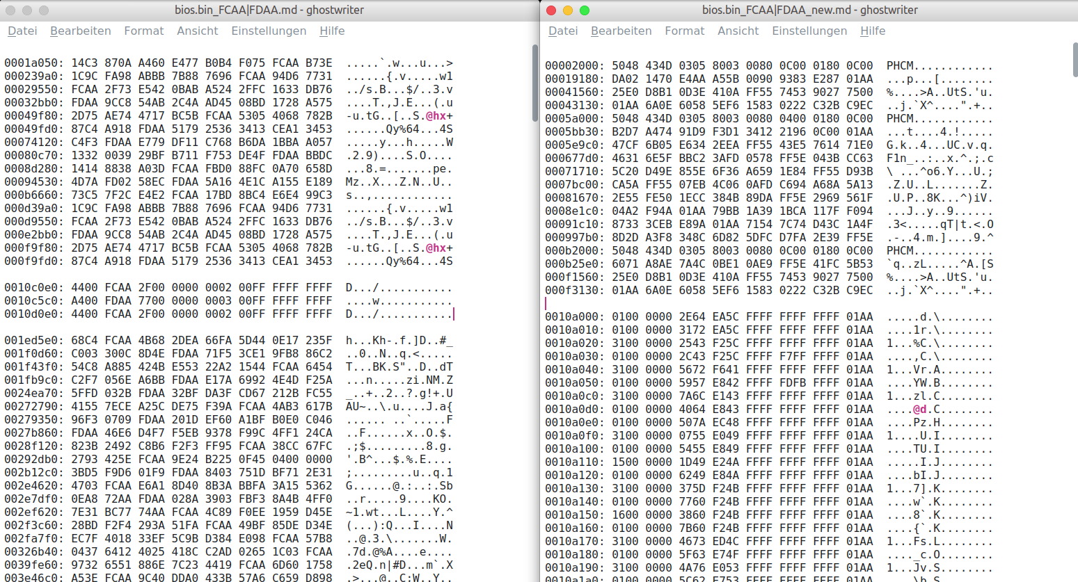 Hi Markus. Mabye you can help me out? Dealing with a Latitude 5430 and W25R128JVSN EEPROM. Got scammed on ebay Kleinanzeigen with two devices which has Admin PW. My readout seems to be trash, the first offsets are empty. Guessing my dump is a piece of crap finally, because this cant be a good sign. If I compare with other images in this topic its completeley different.